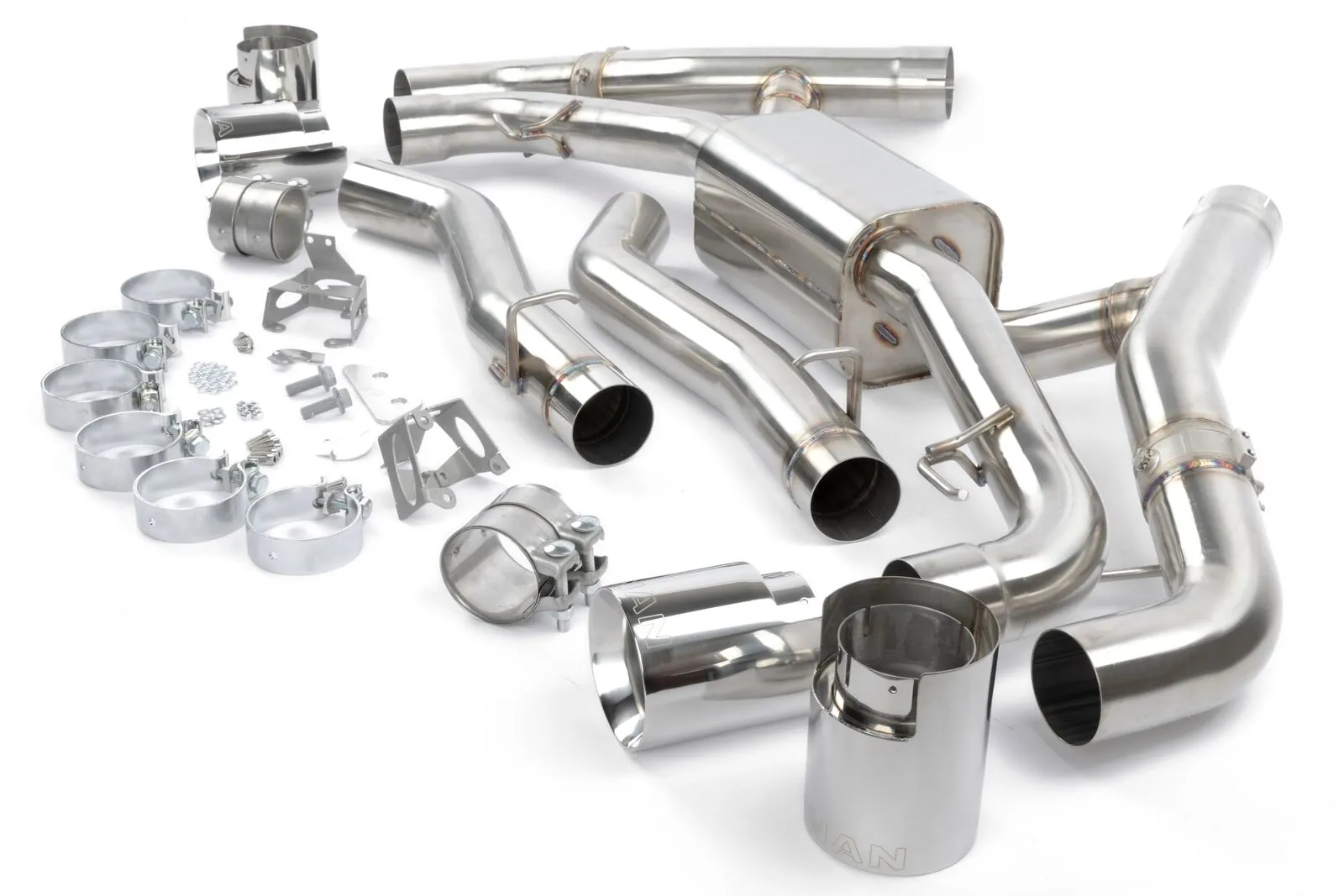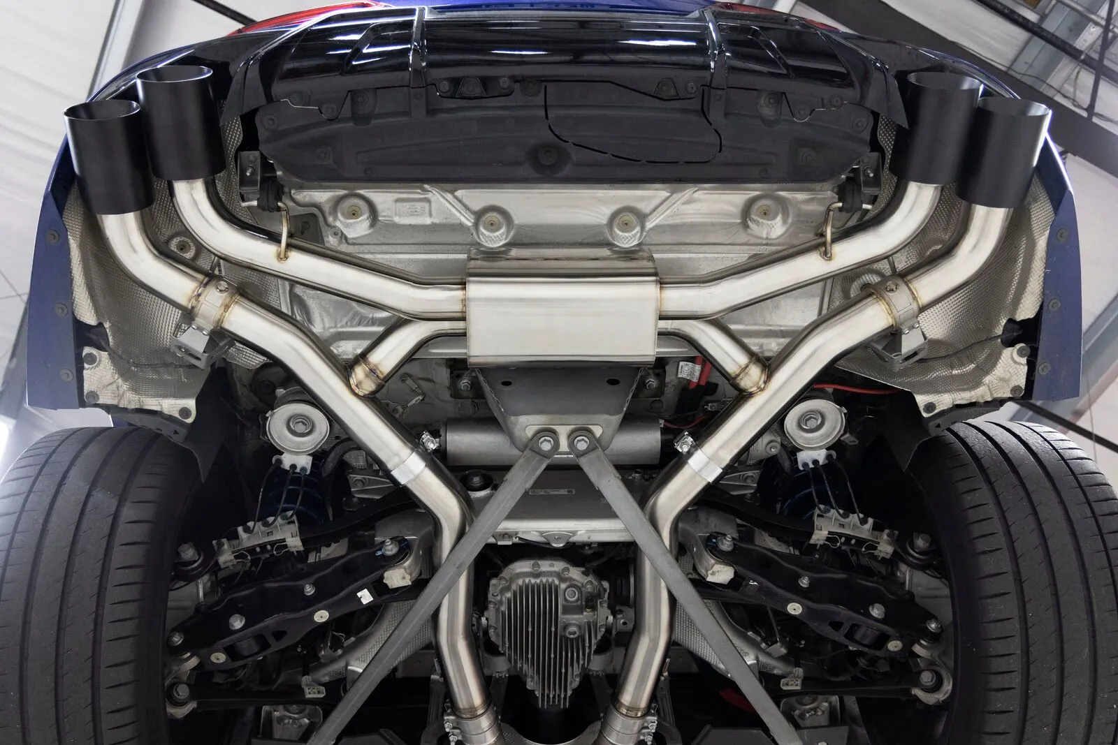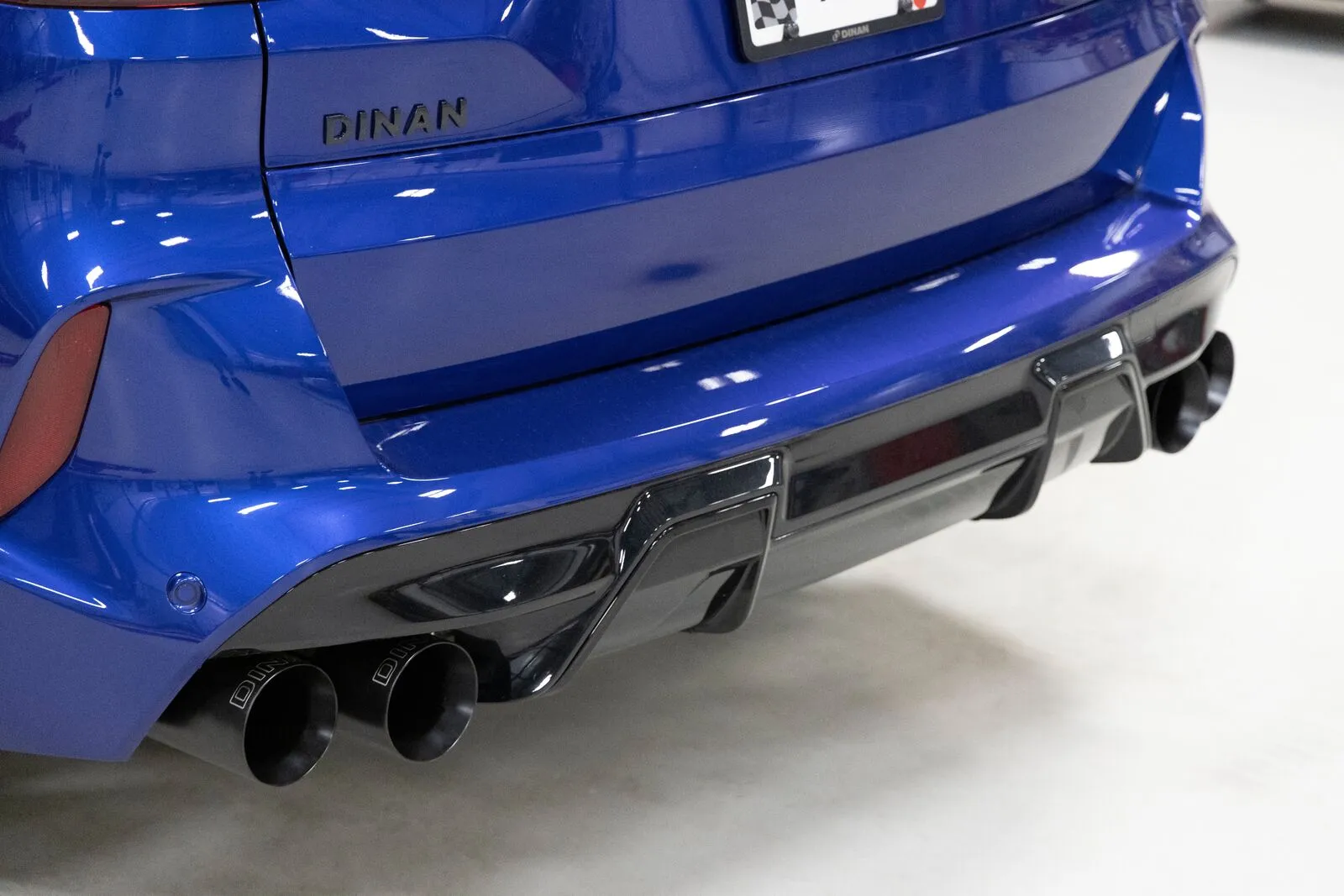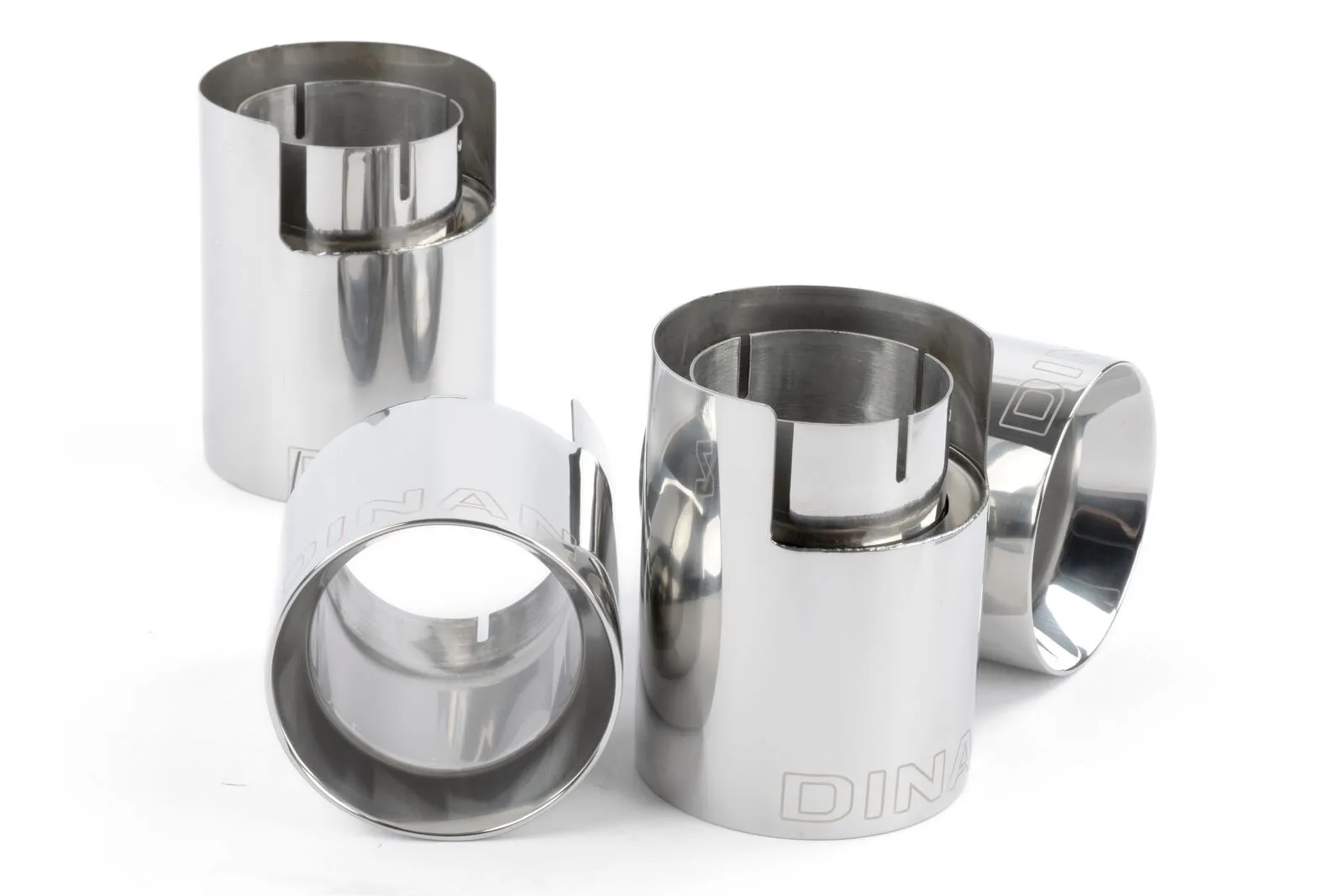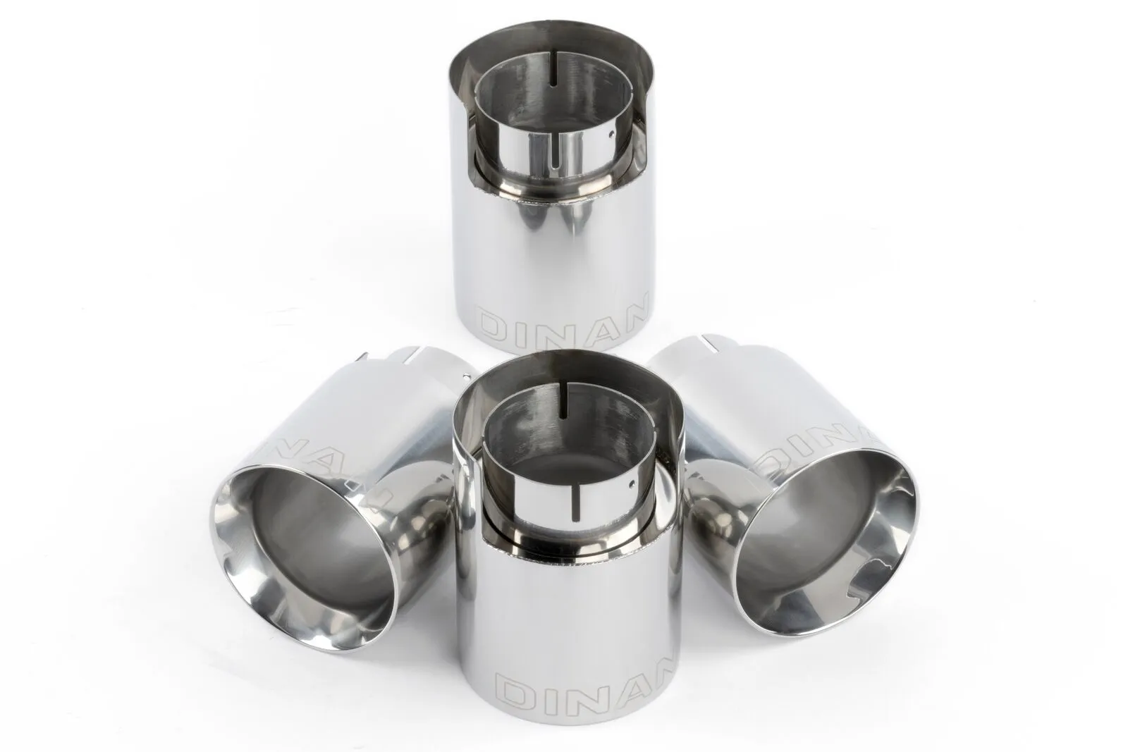 Sound isn't the only aspect of the exhaust that has been modified. The Dinan F9x X5M/X6M exhaust has been skillfully crafted entirely out of T304 stainless steel and TIG welded for the best visual appearance and color. The entire system is then brush finished to further guarantee an immaculate looking system out of the box. The attention to detail is not limited to parts of the system you can't see once the exhaust is installed but is also extended to the exhaust tips themselves. The Dinan exhaust sports massive, quad 4.5" (114mm) clamp-on, double-walled, polished stainless steel and laser engraved exhaust tips that are befitting of the big Bavarian beast. The tips masterfully fill up and accentuate upon the factory cut-outs showcasing an extremely aggressive, yet refined, styling that will force people to take notice even before it is heard.