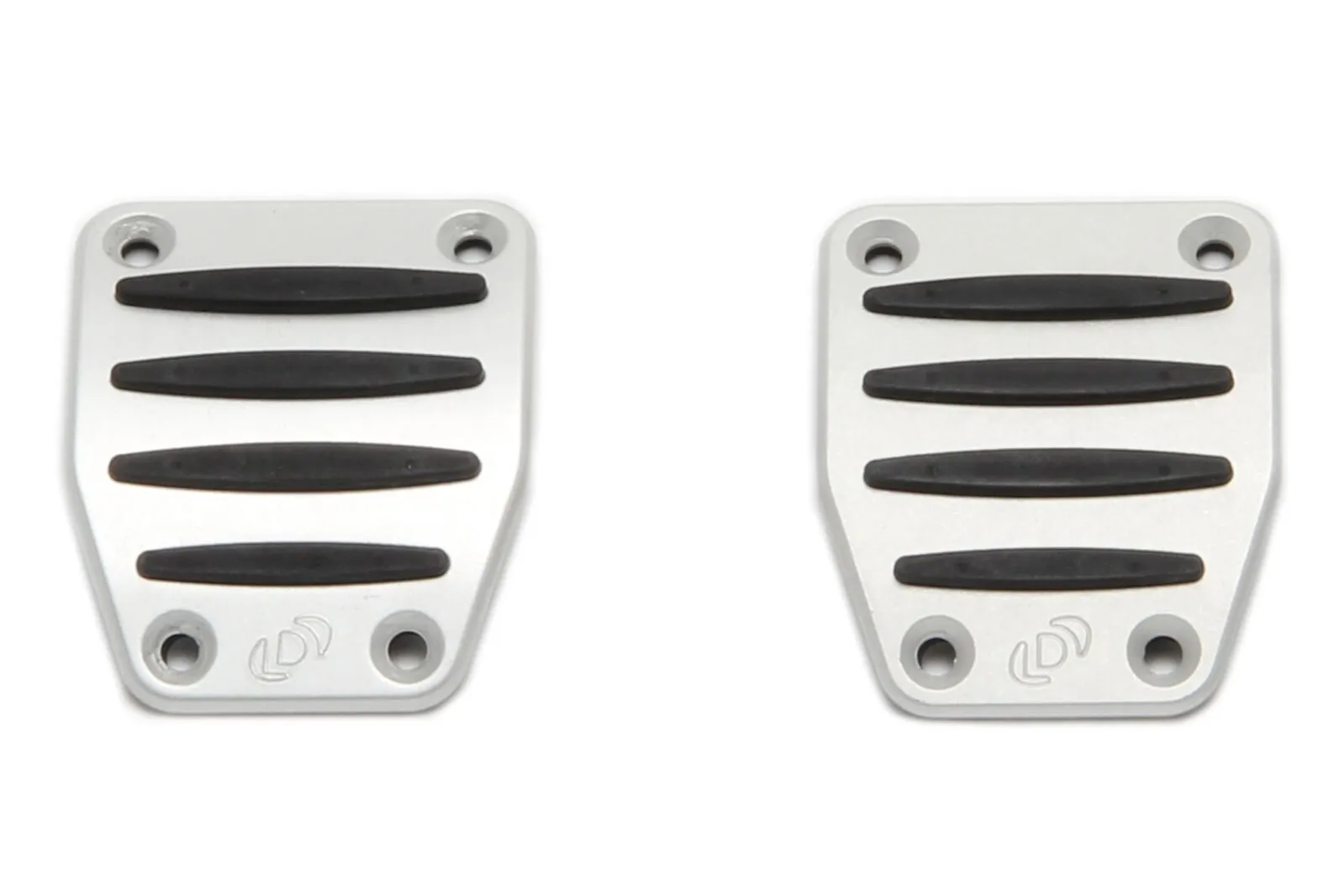 - Replaces the stock black rubber accelerator, brake, and clutch pedal pads, with clear anodized aluminum (silver) covers and rubber inserts.