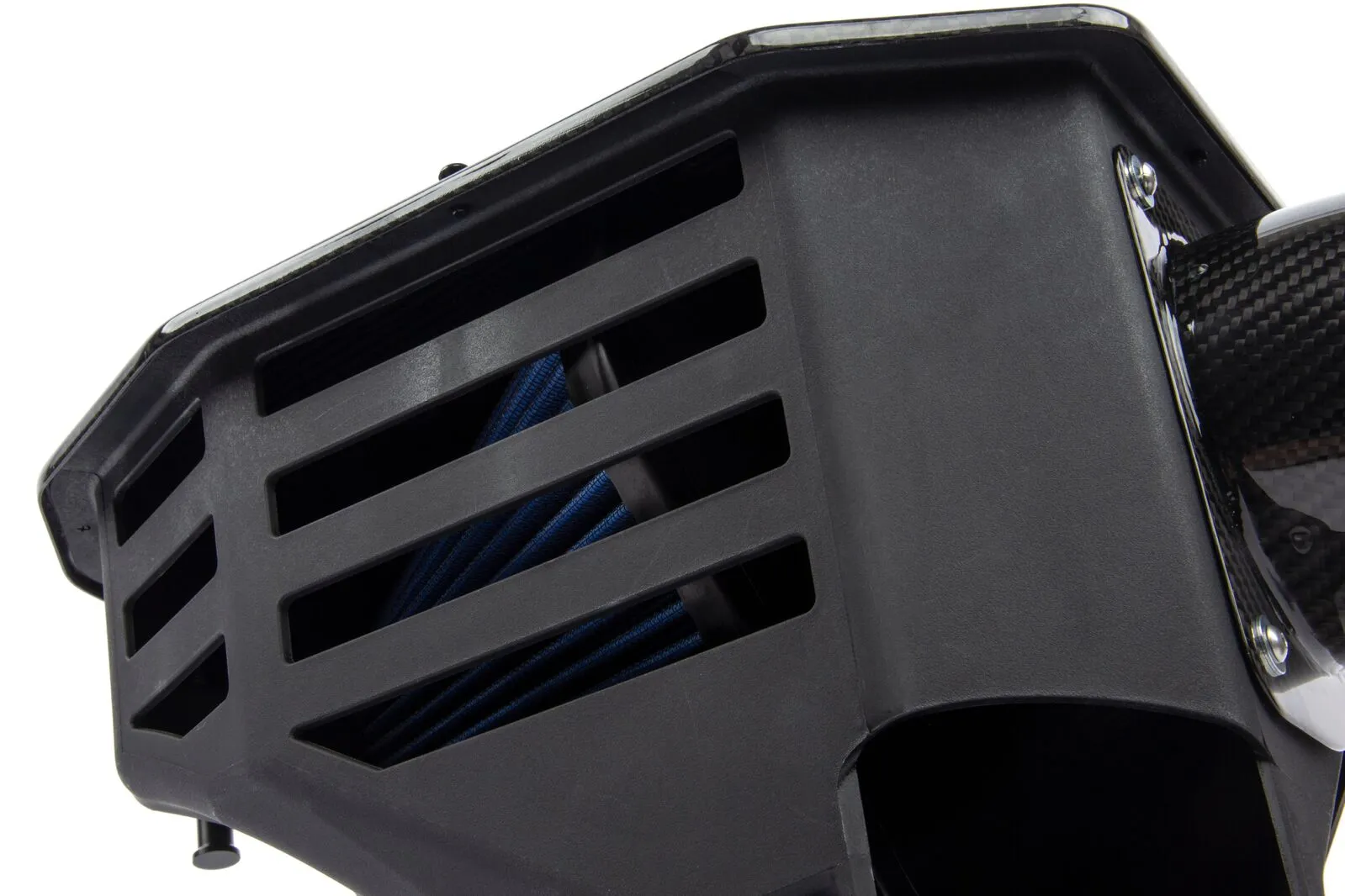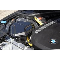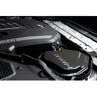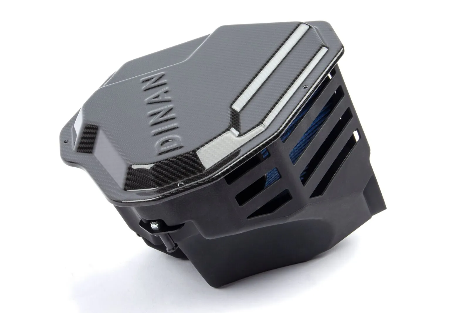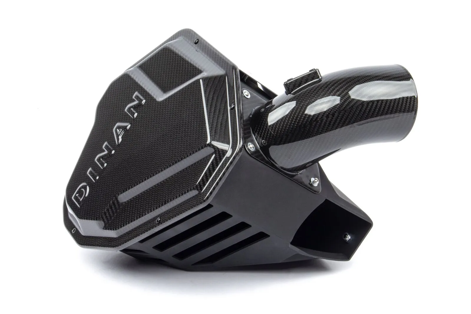 The M240i & M340i are impressive vehicles in terms of performance and style but that is not conveyed when viewing its lackluster stock intake system. In stock trim, the M240i/M340i comes with a dry and lifeless air box housing a basic panel filter that is also accompanied by an intake resonator whose job it is to eliminate turbo/intake noises. The same noises that those in the performance world relish. Essentially BMW has seen fit to give M340i owners an air box that looks uninspiring, flows adequately but not ideally, and emits no noise. The exact opposite of what the platform exudes otherwise. The Dinan carbon fiber intake for the platform rights these wrongs and delivers a semi-open intake capable of flowing 58% more air than the stock system resulting in additional top end power and increased throttle response. At the same time revealing a more aggressive, sporty carbon fiber appearance, and an increase in sound courtesy of the removal of the intake resonator and implementation of a semi-open design.