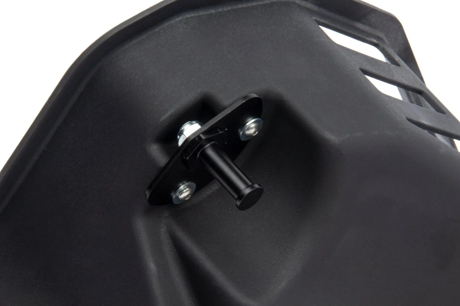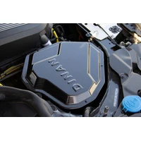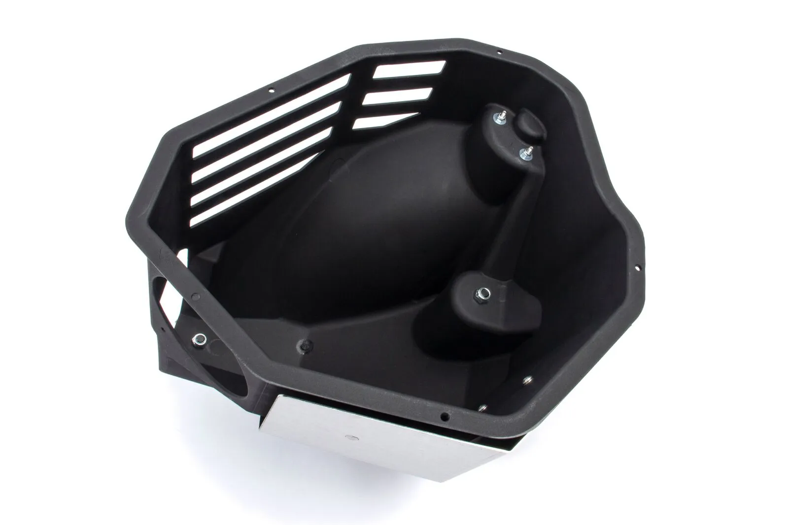 In order to achieve the gains in flow that set the Dinan intake system apart, the entire lower box of the system, and not just the lid, has been reworked and enlarged in an effort to make use of as much of the available real estate as possible within the engine bay. In turn, this allows a 40% larger, custom, free flowing filter to be housed within and maximum flow to be realized. However, a secondary inlet has always been desired by Dinan in order to effectively fill the volume of the enlarged air box and increased filter surface area. This desire led to a multitude of experiments being conducted on the effectiveness of a possible open-air inlet in the system. With different shapes, locations, and sizes of openings being tested, the goal was to ensure that the added secondary inlet did not cause any unwarranted side effects such as an increase in air temps in the system. This is commonplace with open-air intake systems where overheated engine bay air is employed in the intake tract. The results of these tests showed that the patterned openings present in the final iteration of the box located on the opposite side from the engine provided a perfect balance of additional volume to assist the factory inlet all the while not causing an increase in turbo inlet temperatures. This was the case regardless of testing conditions (single/multiple gear pulls, constant speed, 0-100mph runs, etc.).