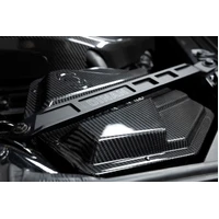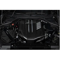 Both the Toyota GR Supra as well as the BMW Z4 are their respective brands answer to the modern 2-seater sports coupe delivering enhanced driving enjoyment in a compact and stylish frame. With aggressive organic lines used unabashedly throughout, they are unapologetic in their outward style to the point of nearing brashness. This character is limited to driving dynamics and external appearance however, with both the sound and under hood visuals not matching the colorful outer demeanor. The factory air box in particular is an uninspired design, albeit functional, and leaves substantial room for improvement in terms of flow and resulting power gains. It also purposefully includes an intake resonator whose sole purpose is the elimination of turbo/intake noises - the same noises that those in the performance world relish. The Dinan carbon fiber intake for the platform rights these wrongs and delivers an intake capable of flowing 58% more air than the stock system resulting in improved throttle response, additional power and the elimination of a potential roadblock when opting to pursue a high-powered build (upgraded turbo, fueling, etc). At the same time revealing a more aggressive, sporty carbon fiber appearance, and an increase in sound courtesy of the removal of the intake resonator and implementation of a semi-open design.