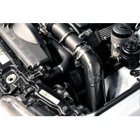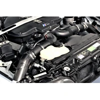 The design goal for the M5 High Flow Cold Air Intake System was very specific: ensure that the powerful M5 engine is breathing plenty of cool oxygen-rich air for maximum performance under varying driving conditions. The system replaces the factory air-boxes with proprietary twin high flow air filters feeding large diameter intake plumbing, carefully designed to minimize air turbulence for maximum intake airflow. The filters are relocated outside of the engine compartment behind the front bumper and below the headlights insulating the intake from under-hood heat. Additional heat shields are incorporated in order to block the flow of power-robbing hot air passing over the radiator. The system also includes modified fog light trim rings for a ram air effect at speed.