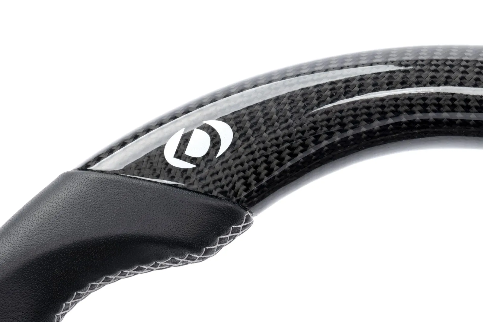 - Choose From Genuine Carbon Fiber with Leather Grips, or Alcantara Wrapped Design