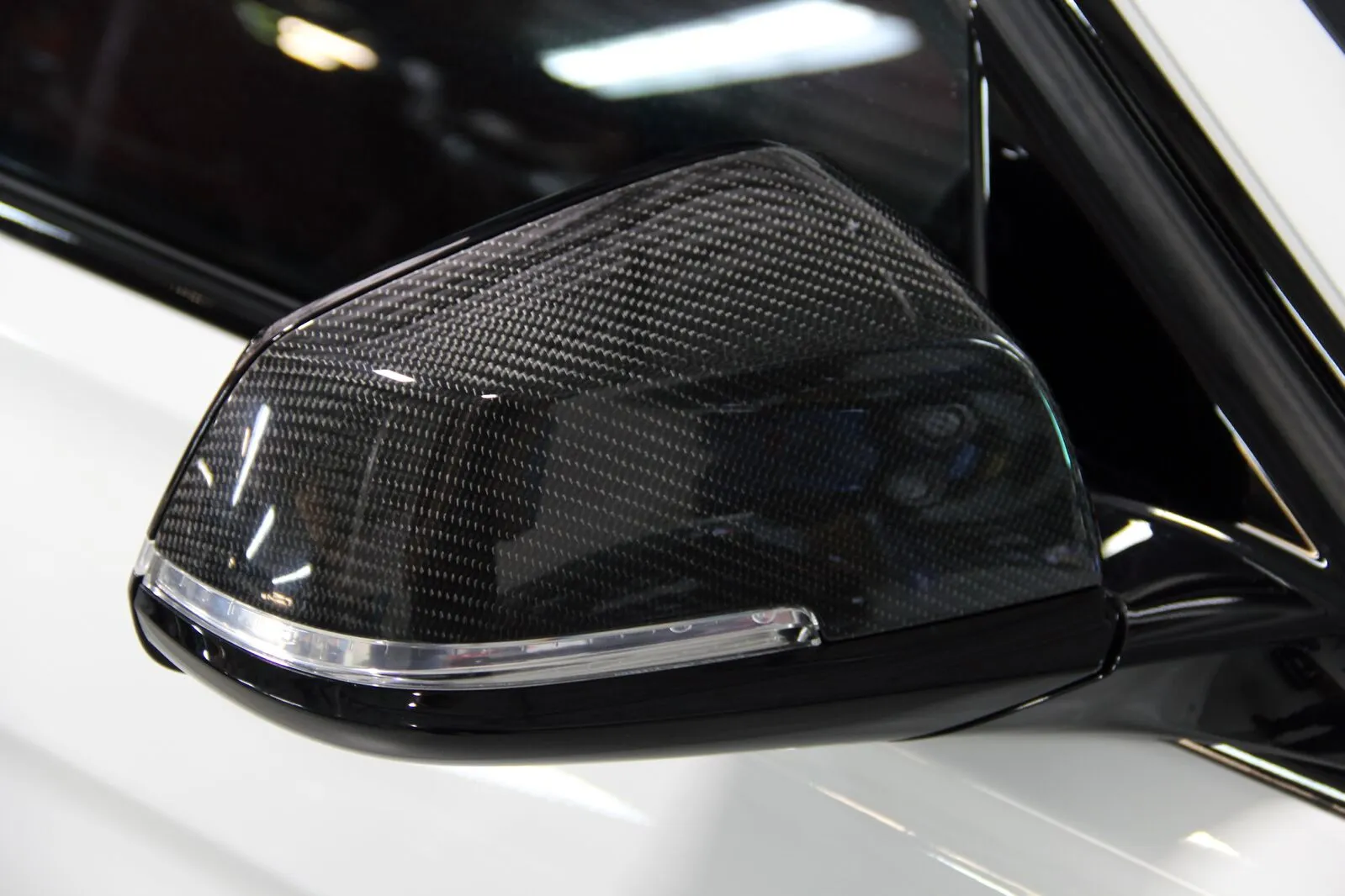 Add a touch of style and help your BMW stand out from the crowd with Dinan's clear-coated carbon fiber mirror caps that provide a unique, aesthetically-pleasing high-tech appearance. Our mirror covers, unlike most, are full replacements complete with a molded fastening system for quick and easy installation instead of simple overlays. You will be sure to impress with Dinan's CF mirror covers on your ride!