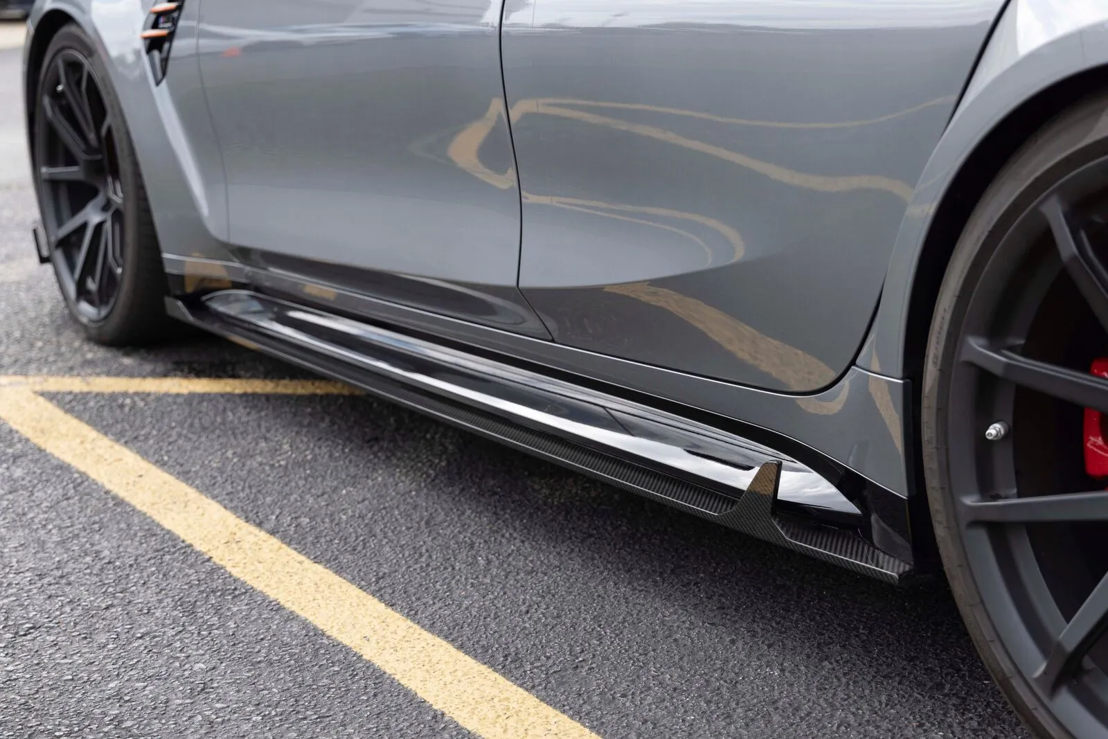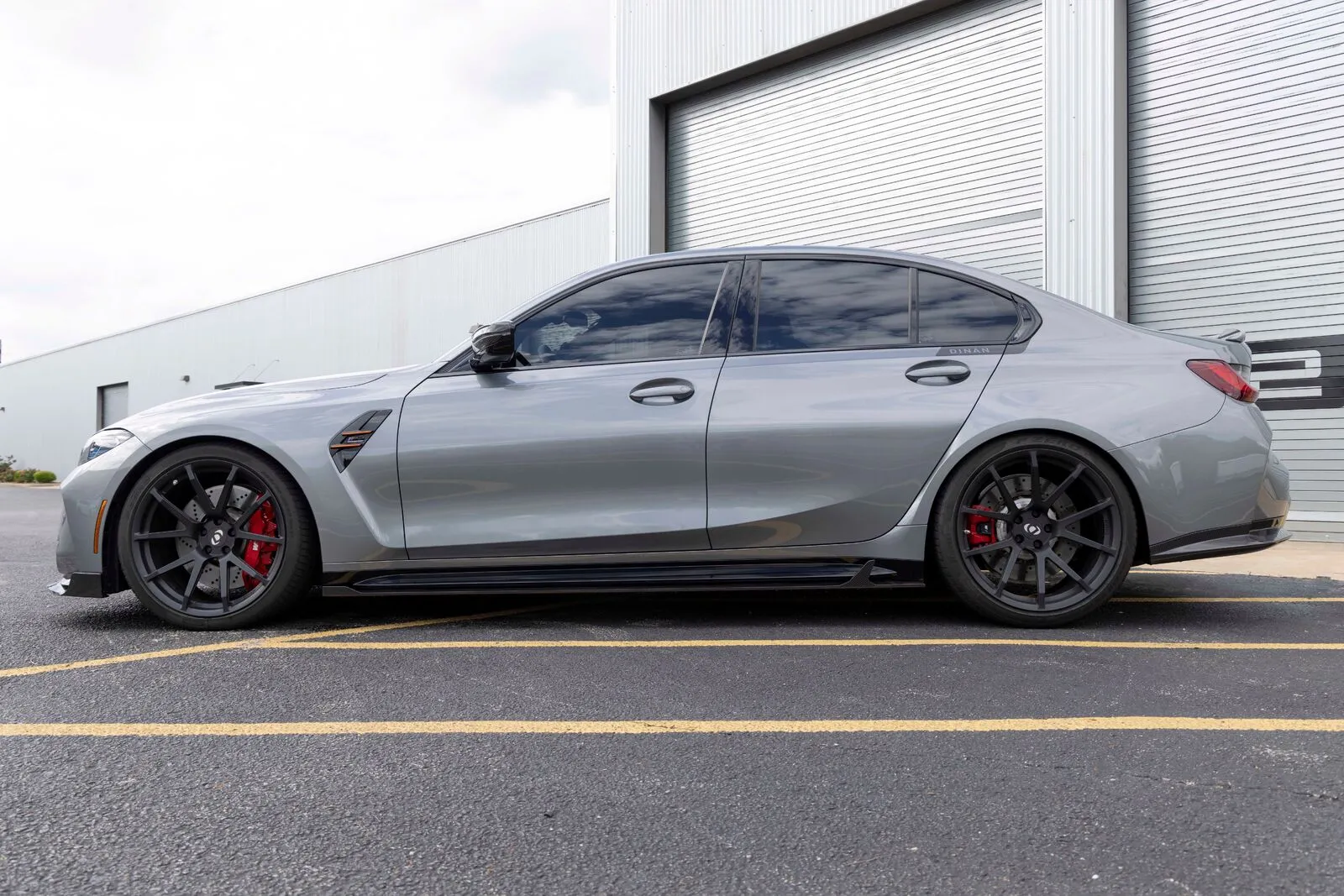Invoking the feeling of motion, the Dinan side skirts for the G8x M3/M4 take the factory runners and add a touch of attitude that enhance select body lines wcourtesy of the rear flares. Together, when matched with the Dinan front lip and rear diffuser/splitters the side skirts create a continuous and fluid carbon fiber cosmetic solution around the entirety of the vehicle.