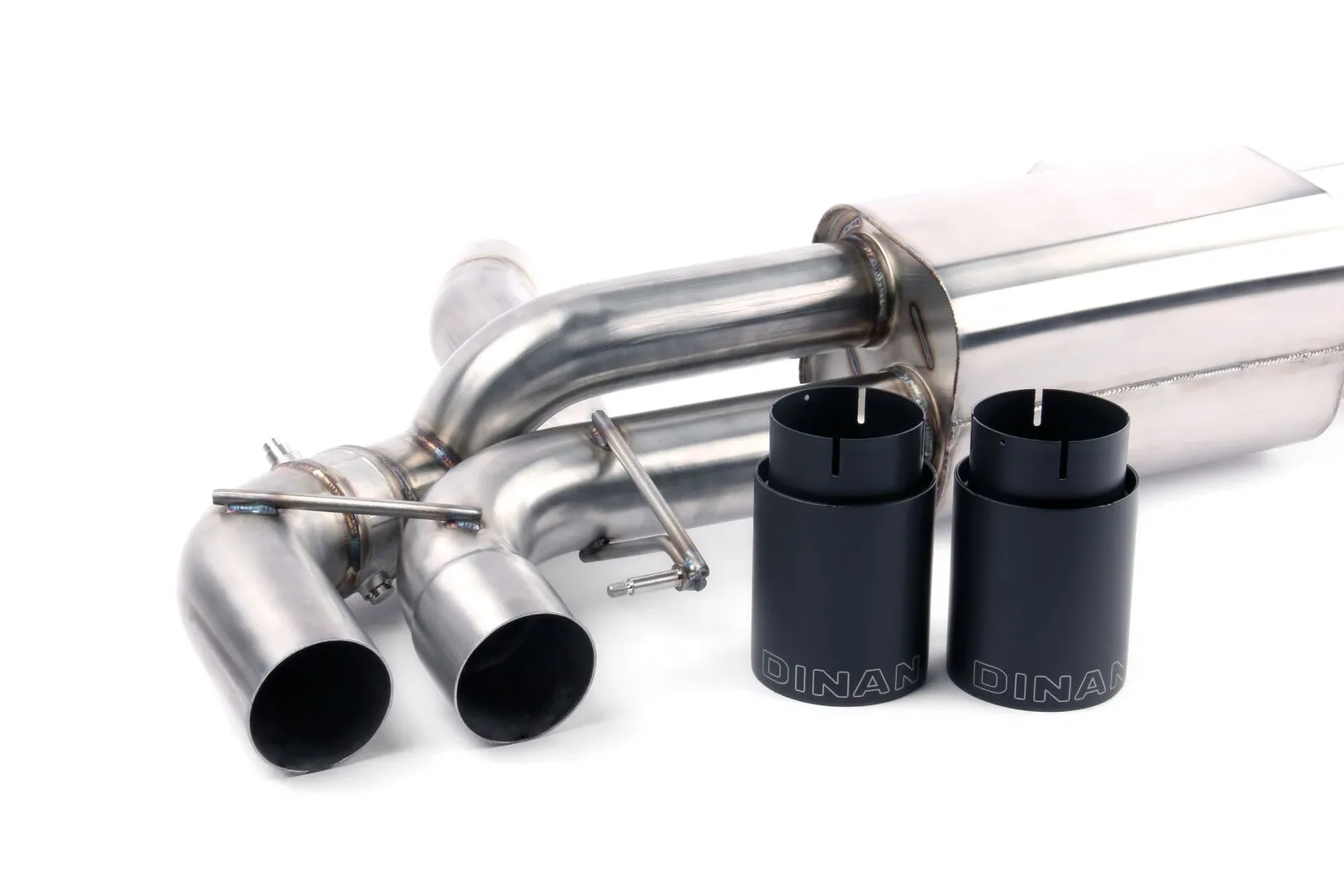 Dinan Free Flow Axle-Back Exhaust w/ Black Tips (D660-0079-BLK) and corresponding X-Pipe (D660-0081) for maximum aural pleasure