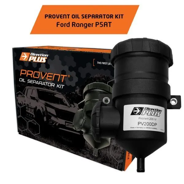 Direction-Plus™ ProVent® oil separator kit PV665DPK suits Ford Ranger P5AT model and it is mounted on the radiator support panel. The ProVent® oil separator kit PV665DPK protects the diesel engine by substantially reducing the amount of oil entering the engine from blow-by gas in the crankcase ventilation system.