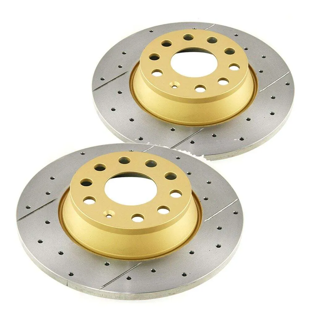 DBA rotors can be improved with the X-Gold design, a unique non-directional cross-drilled pattern that increases passive cooling, allows for gas-escape whilst maintaining excellent rigidity. The performance realised is similar to the T2 slotted range, however the aesthetics are further enhanced with all of the non-friction surfaces being coated in a unique gold paint.