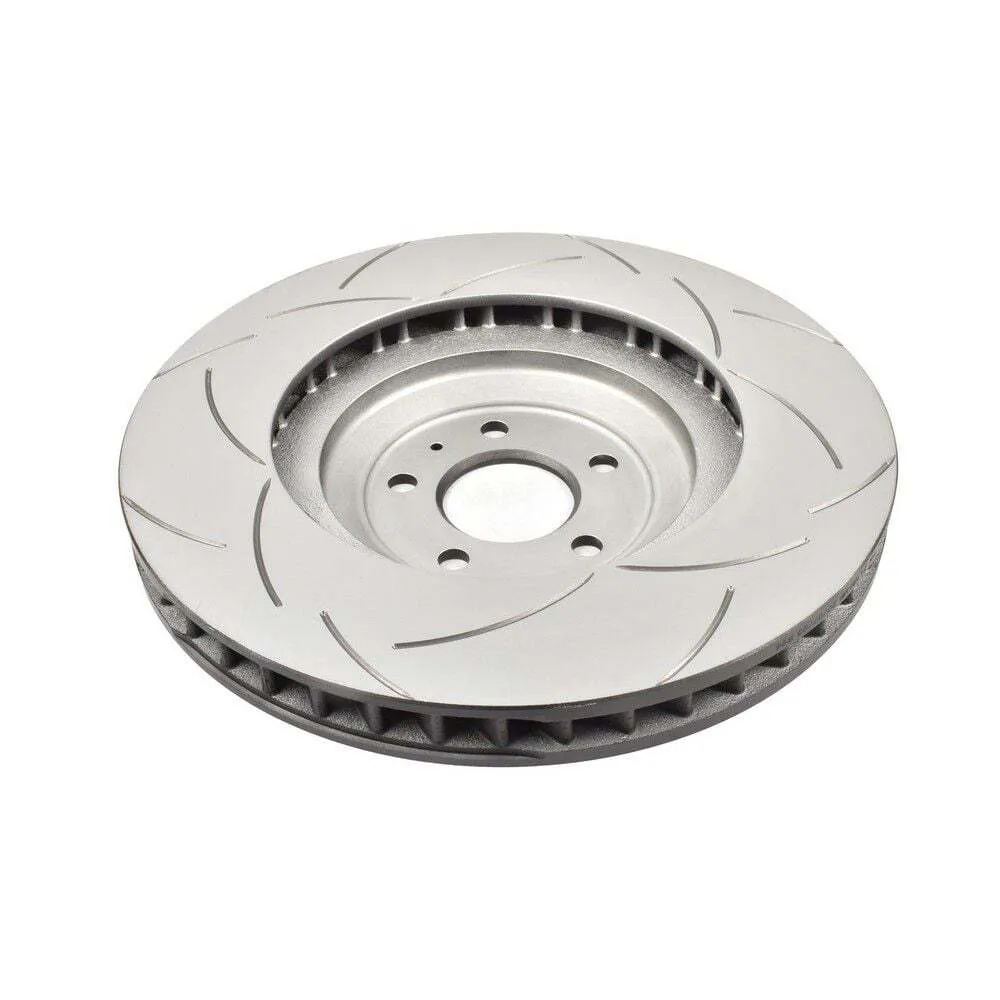 DBA's Street Series rotors can be further enhanced with optional slots known as T2 - 32 CNC machined bi-directional curved slots. Machined slots in the friction surface allow a channel for braking by-products - brake dust and gasses from the incredible heat - to escape. This has a multitude of benefits, from reducing pad contamination, controlling heat build-up, and brake pad knock back. These combine to enhance braking performance and increase service life of the pads and rotors. Compared to more common straight slots, the unique curved slot design reduces the noise associated with 'racing' brakes, and minimises any detriment to pad surface condition.