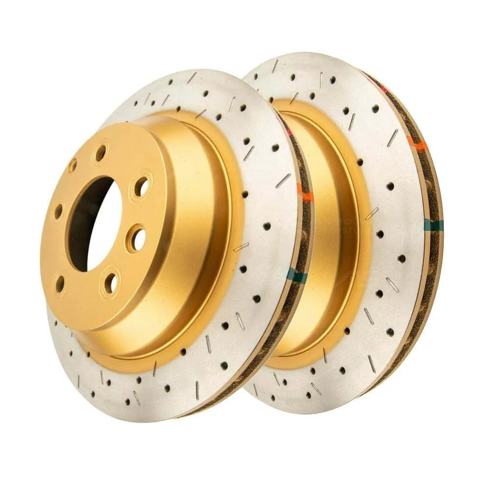 DBA 4000 Series rotors can be improved with the X-Gold XS design, a unique non-directional cross-drilled and slotted pattern that increases passive cooling, allows for gas-escape whilst maintaining excellent rigidity. The performance realised is similar to the T2 slotted range, however the aesthetics are further enhanced with all of the non-friction surfaces being coated in a unique gold paint.
