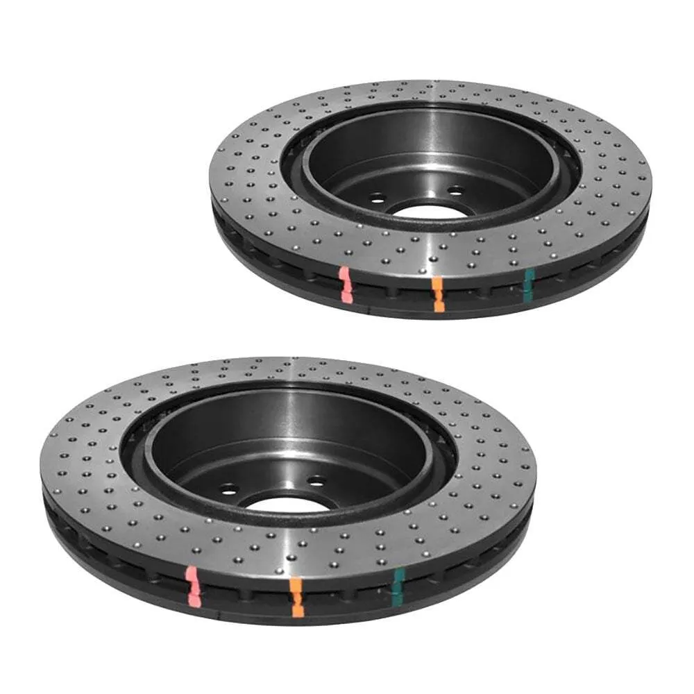 DBA 4000 Series rotors can be improved with the XD cross-drilled and dimpled design, having undergone additional CNC machining to yield 84 cross-drilled holes, and 36 dimples, to allow maximum heat transfer, along with dust and gas removal. This is achieved whilst minimising the propensity to crack often seen in drilled rotors.