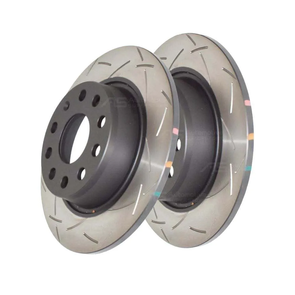 DBA's 4000 Series and 5000 Series rotors can be further enhanced with optional slots known as T3 - 48 CNC machined tri-directional curved slots. Machined slots in the friction surface allow a channel for braking by-products - brake dust and gasses from the incredible heat - to escape. This has a multitude of benefits, from reducing pad contamination, controlling heat build-up, and brake pad knock back. These combine to enhance braking performance and increase service life of the pads and rotors. Compared to more common straight slots, the unique curved slot design reduces the noise associated with 'racing' brakes, and minimises any detriment to pad surface condition.