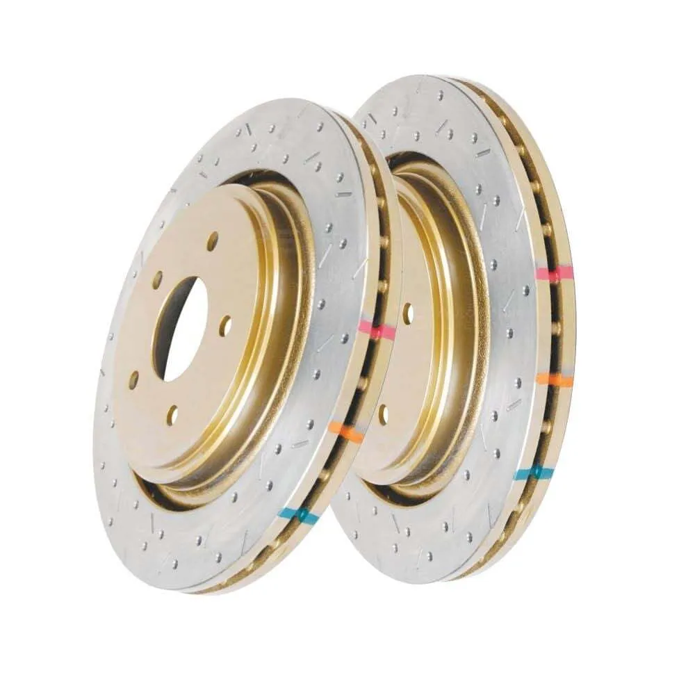 DBA 4000 Series rotors can be improved with the X-Gold XS design, a unique non-directional cross-drilled and slotted pattern that increases passive cooling, allows for gas-escape whilst maintaining excellent rigidity. The performance realised is similar to the T2 slotted range, however the aesthetics are further enhanced with all of the non-friction surfaces being coated in a unique gold paint.