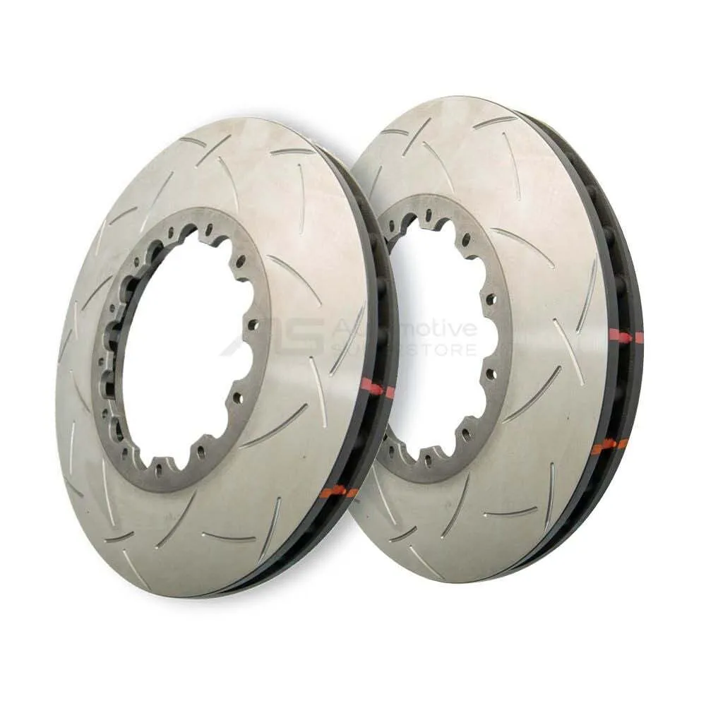 DBA's 4000 Series and 5000 Series rotors can be further enhanced with optional slots known as T3 - 48 CNC machined tri-directional curved slots. Machined slots in the friction surface allow a channel for braking by-products - brake dust and gasses from the incredible heat - to escape. This has a multitude of benefits, from reducing pad contamination, controlling heat build-up, and brake pad knock back. These combine to enhance braking performance and increase service life of the pads and rotors. Compared to more common straight slots, the unique curved slot design reduces the noise associated with 'racing' brakes, and minimises any detriment to pad surface condition.