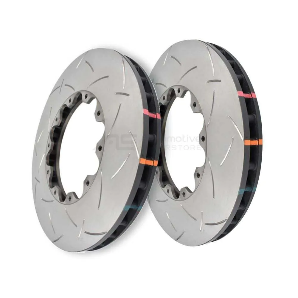 DBA's 4000 Series and 5000 Series rotors can be further enhanced with optional slots known as T3 - 48 CNC machined tri-directional curved slots. Machined slots in the friction surface allow a channel for braking by-products - brake dust and gasses from the incredible heat - to escape. This has a multitude of benefits, from reducing pad contamination, controlling heat build-up, and brake pad knock back. These combine to enhance braking performance and increase service life of the pads and rotors. Compared to more common straight slots, the unique curved slot design reduces the noise associated with 'racing' brakes, and minimises any detriment to pad surface condition.