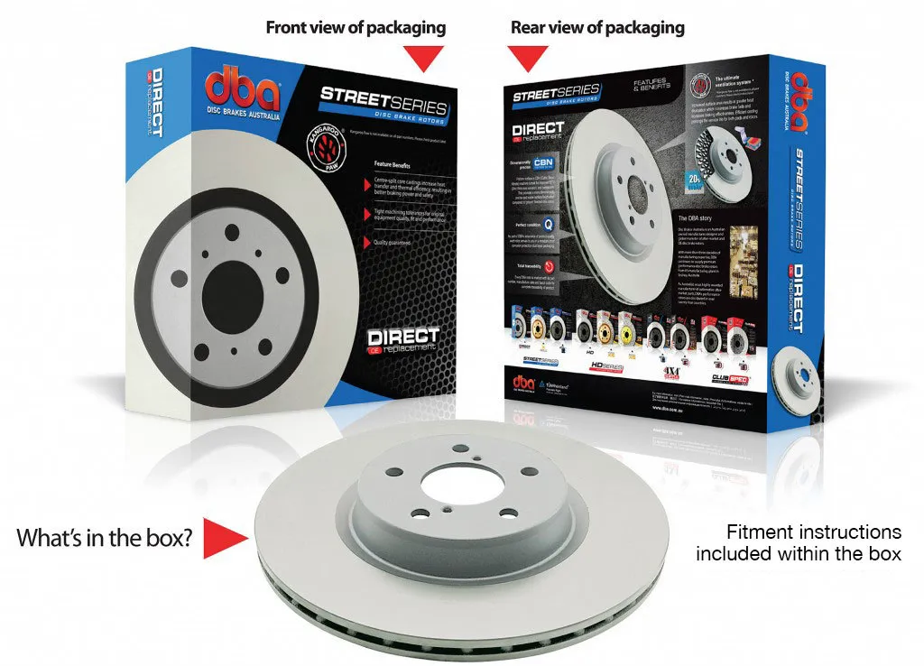 Disc Brakes Australia - 100% confidence in fitment every time, not the cheap inferior alternative!  Australian engineered and quality assured to the highest possible standards for the safety of drivers the world over!  Manufacturing to OEM standards are our minimum requiremennts.  With more than three decades of manufacturing expertise, DBA continues to supply premium performance disc brake rotors from its manufacturing plant in Sydney.  As Australia's most highly awarded manufacturer of automotive aftermarket parts, DBA's performance rotors are distributed in over twenty-four countries.  DBA's OEM replacement rotor series includes Standard, Slotted and Cross-Drilled models with added extras like protective paint coatings, T2 wiper slots extending pad life, En-Shield rust free protection, X Gold catering for the big brake look and Clubspec T3 4000 & 5000 series performance and motorsport rotors!