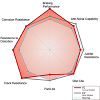 • Newly designed 8 curved slots enable high friction μ:from cold application and stability under high brake load.
