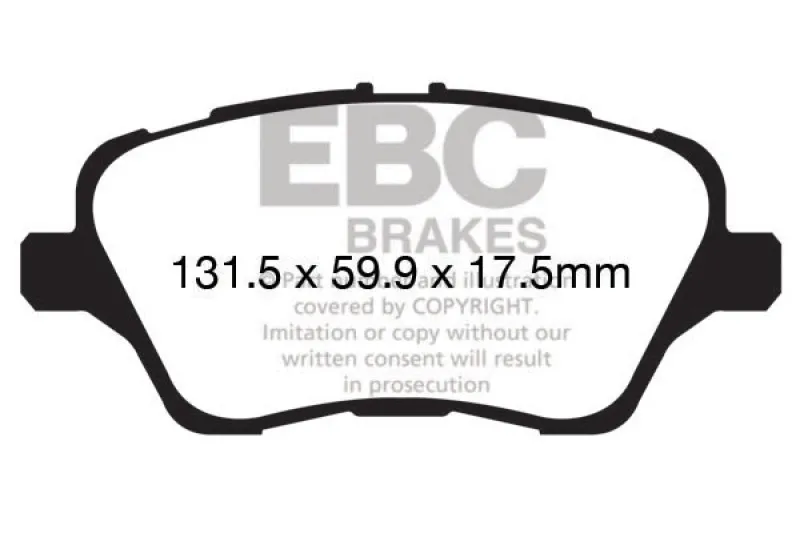 EBC Yellowstuff is an aramid fibre based brake compound with high brake effect form cold and is possibly one of the first ever compounds that can be used for STREET AND TRACK DRIVING. These pads do not require warm up but do get even stronger under the heat of hard driving. These are not a low dust pad and if your desire is for a low dust premium street use pad, you should consider EBC Redstuff.When considering full race use, Yellowstuff has been a strong favourite, having been used for two years in the Swedish Camaro Cup and at numerous other race events where a stock caliper system is fitted.It is also the choice of 90-percent of the Mazda MX5 Miata competitors in the UK race series and has an unblemished record as rotor friendly track pad for vehicles up to 2000 lbs weight or 200 BHP.In the USA the SCCA and NASA drivershave been testing Yellowstuff with feedback and good reports POURING in from a 543 test driver major market proving event with these groups. Read that figure again 543 test drivers.There is no guesswork here.