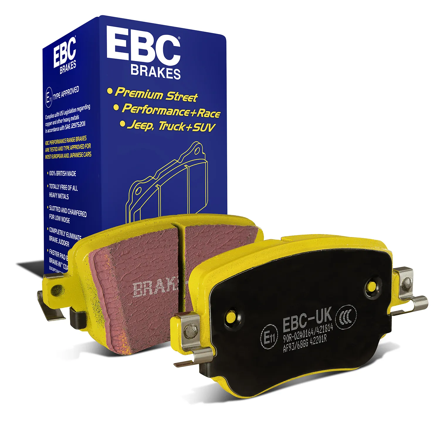 Yellowstuff has been the flagship pad by EBC for over a decade and gives instant brake response, great feel and modulations with silk-smooth noise free braking and was also improved in 2021 to be copper free and conform to all new legislations for the environment and our pads are fully shimmed chamfered and slotted.