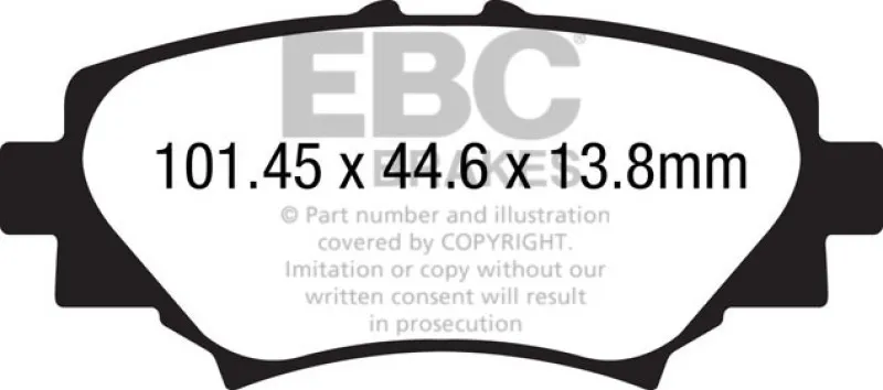 If you simply need a quality OEM replacement pad, look no further than Ultimax. Made in the UK Bristol EBC Brakes manufacturing plant Ultimax is a beautifully engineered brake compound that lasts well, produces minimal dust and is the perfect choice for the urban or daily driver. Why spend more if all you need is a quality replacement pad.The Ultimax pad does include a small percentage of steel fibre to achieve its price point, far less content than our competition where steel fibre content can attain 50 volume and this optimum fibre blend is what makes Ultimax both popular and unique amongst brake blends .Once bedded in Ultimax will inspire confidence in any car light truck or SUV no matter how you drive.Its universal heat range abilities and low rotor wear are additional benefits of the Ultimax pad range which is the EBC worldwide number one selling brake with numbers of sets sold running into tens of millions over the recent years. Unlike many of our performance grades Ultimax has remain unchanged as a pad compound for ten years now, a true testament to its success and customer acceptance. Why change a winning formula.Black coded in the EBC range EBC Ultimax is a fully ECE R 90 approved brake pad range and at its lower price point, less than HALF the price of original parts yet TOTALLY EQUIVALENT by nature of its R 90 brake safety approval, Ultimax offers great value for money and first class driving safety.When replacing brakes of any kind please remember how important brake safety is to your own well being and either have a professional mechanic install your new brakes or if you are a qualified mechanic use the EBC installation DVD as a guide in support of your vehicle owner's manual. These installation guide DVD tasters can be viewed here and the full DVD purchased from online vendors.