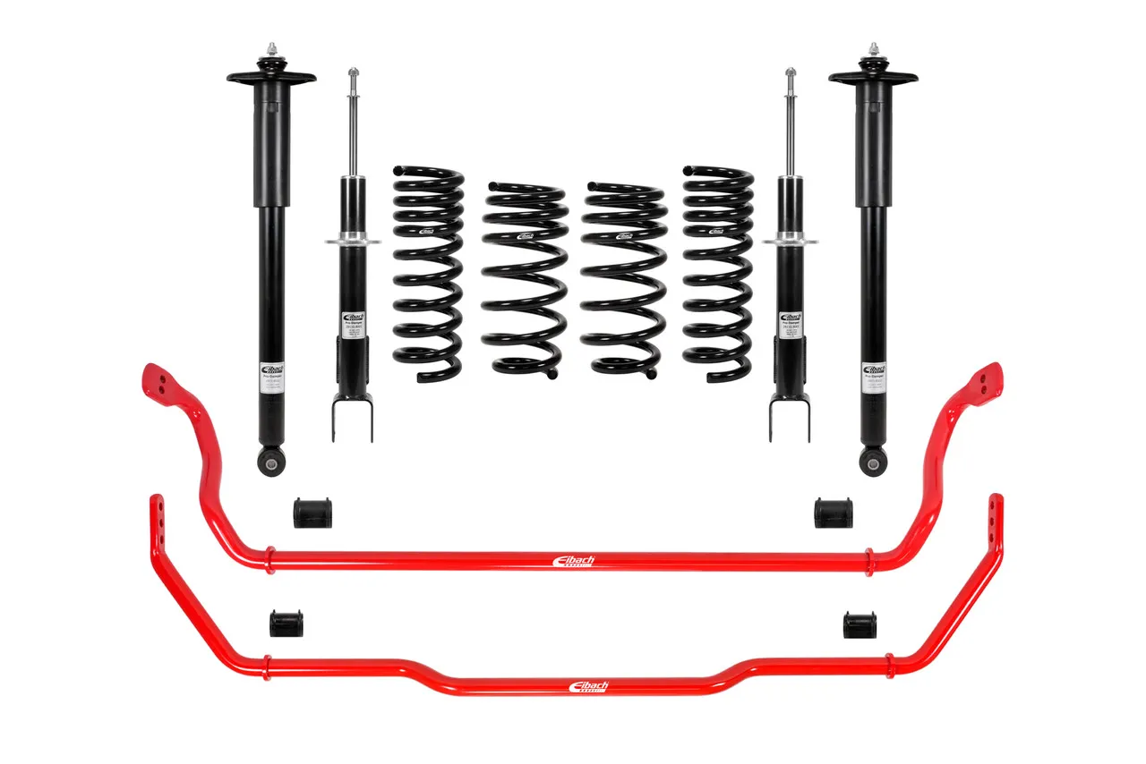 The Eibach Pro-System-Plus adds the final step for total suspension dominance. Pro-System-Plus kits are designed by our team of suspension engineers and ride control experts to offer the best-possible street performance, but without sacrificing ride quality. The Pro-System-Plus is a precisely balanced combination of sport springs, bump-stops (secondary springs), dampers and anti-roll bars designed and tuned to operate as a complete performance suspension system.