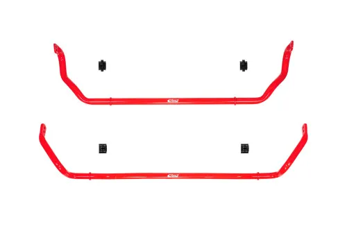Complete your suspension upgrade with an Eibach ANTI-ROLL-KIT. While our PRO-KIT and SPORTLINE spring sets are regarded as the primary suspension enhancement components, the Eibach ANTI-ROLL-KIT allows critical fine-tuning of your cars handling characteristics. Our ANTI-ROLL-KITs reduce body roll through increased design stiffness over stock bars. The result: increased handling and cornering grip in any performance-driving situation. Manufactured from cold-formed steel alloy for precision performance, and finished with a longlasting red powder coat finish, the ANTI-ROLL-KIT comes complete with all mounting hardware. *Features* * Reduction of body roll when driving in curves and during fast changes of direction * Unimpaired spring comfort at bilateral spring deflection * Decreasing the load difference between the wheels inside and outside the curve * Impacting the under- or over-steering tendency positively (auto-steering behavior)