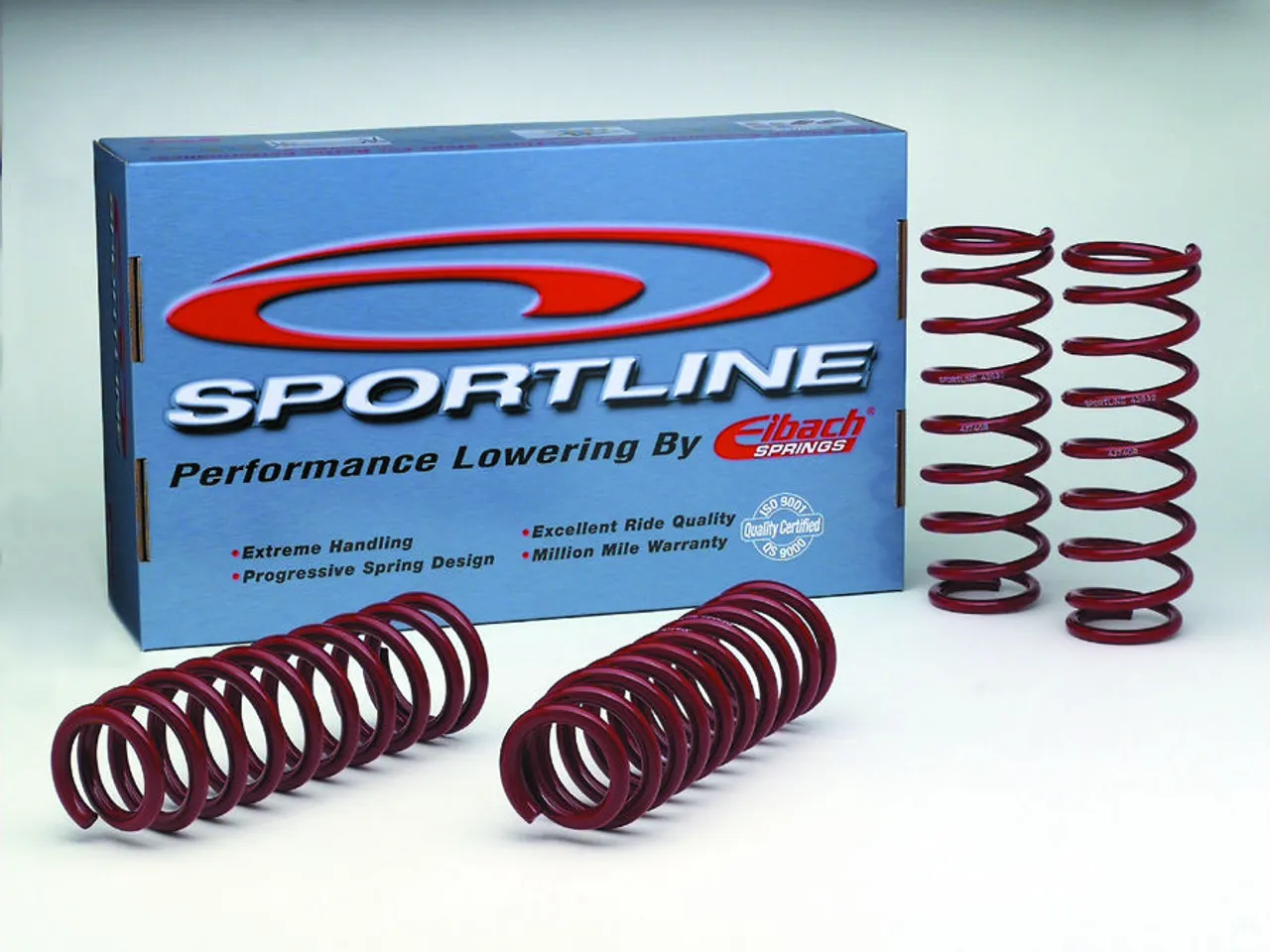 Eibach SPORTLINE is the extreme-performance spring set created for the extreme enthusiast, the one who craves a race-car attitude for maximum street performance, with the lowest possible drop, but with the exceptional ride quality you expect from Eibach. Engineered with the same care as our PRO-KIT springs, Eibach SPORTLINE springs achieve legendary handling by aggressively lowering your car's center of gravity, using our precision-engineered progressive spring rates. By radically lowering your car's center of gravity, our SPORTLINE springs dramatically reduce squat during acceleration, body roll in corners and nose-dive under braking. By using our proprietary, progressive spring design, our SPORTLINE springs provide the ultimate balance between high performance, extreme lowering and comfortable ride quality. When combined with today's wild bigger wheels and tires, the result is a car that handles just as satisfactorily as it looks. *Lowering amount varies by application use our application lookup for specific information on lowering for your car, truck or SUV. *Features* * Extreme Performance Meets Extreme Style * Race-Car Like Handling * Lower than our Pro-Kit. Lowers Vehicle 1.7" - 2.3" (lowering amount varies by application - use our application look-up for specific information on lowering for your car or truck) * Progressive Spring Design * Excellent Ride Quality * Part of the Eibach Sport-System * Million Mile Warranty