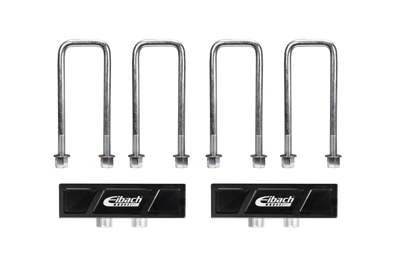 The Eibach Lift Block system is designed to increase the lift on solid-axle trucks that use leaf spring suspension. The Lift Block system consists of a pair precision machined from 6061-T6 billet aluminum blocks, a set of U bolts to secure them to the axle, and bump stop spacers (when necessary). Available in 1" and 1.5" lift heights, Lift Blocks are the perfect complement to your PRO-TRUCK COILOVER or PRO-TRUCK-LIFT system.