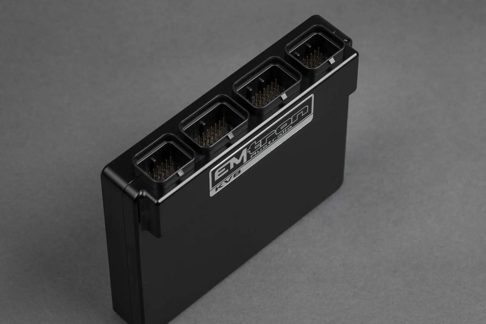 Emtron's KV8 is a wire-in ECU with extreme flexibility. Industry leading I/O count will ensure you do not have to make any sacrifices when configuring your engine and vehicle. This ECU will support up to 8 Channels of fuel and 8 Channels fully sequential Ignition. Every KV8 is housed in a durable billet Aluminium enclosure and includes up to 32MB permanent memory for on board logging, 4-channel oscilloscope function, Drive By Wire (DBW) control up to 2 channels, dual LSU4.9 Lambda controllers, dual digital Knock control, Ethernet communications and 3 axis G-force sensing to name a few.