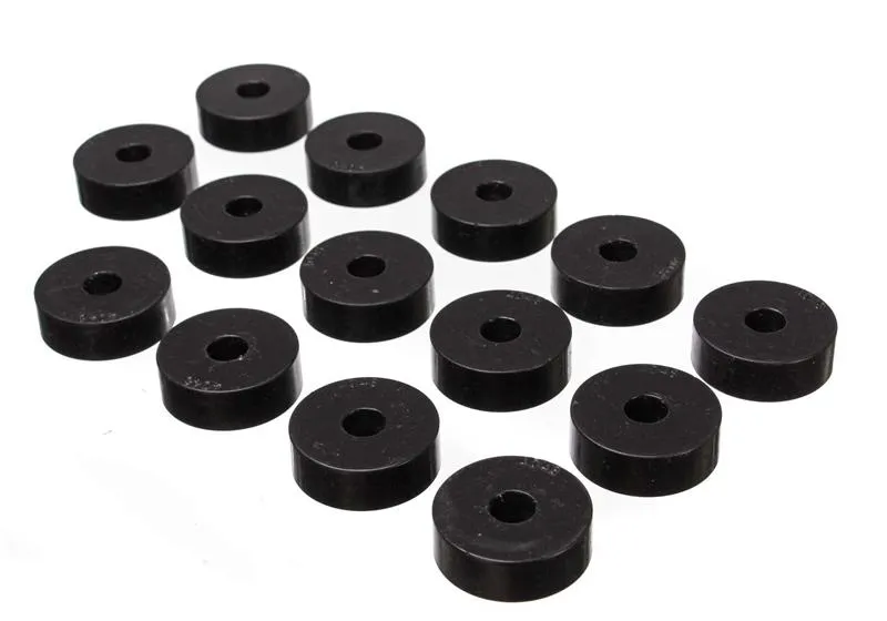 Will replace distorted and worn-out original rubber mounts to maintain car body and truck cab to bed alignment. Original rubber mounts are so soft they often crack, distort, and crush so badly they often fall off. And aluminum body mounts are too harsh for street use that they tend to break and cause other components to break. Energy's specially formulated Hyper-Flex(TM) polyurethane cab and body mounts combine the best qualities of both: they're soft enough for a smooth ride, yet rugged enough for the most demanding road or track. Most sets have a strong zinc plated steel ring molded into them - for added durability and when the application requires it.
