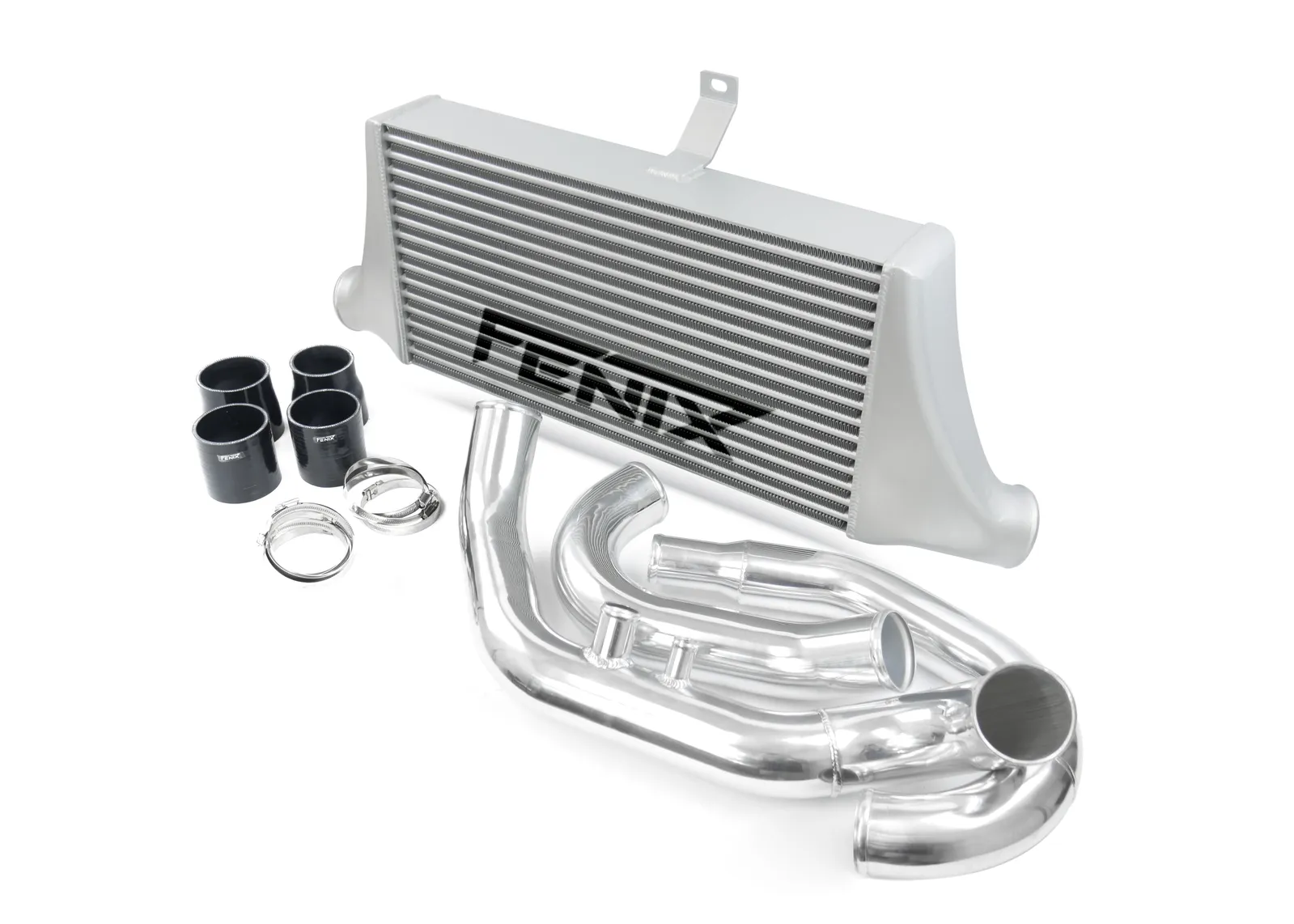 For the aluminium kit, piping is polished and the intercooler is in a raw aluminium finish