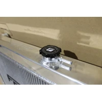 Radiator comes with a 1/8" NPT temp sensor provision in the top tank & a billet drain plug.