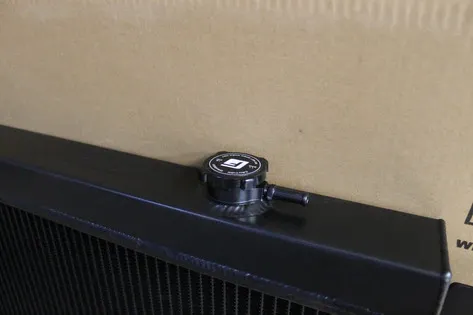 GEN II, now with billet drain plug & 1/8" NPT sensor provision in the top tank. We now stock this radiator in an automatic configuration. The transmission oil cooler has AN6 threads, we supply barb adapters with the radiator.