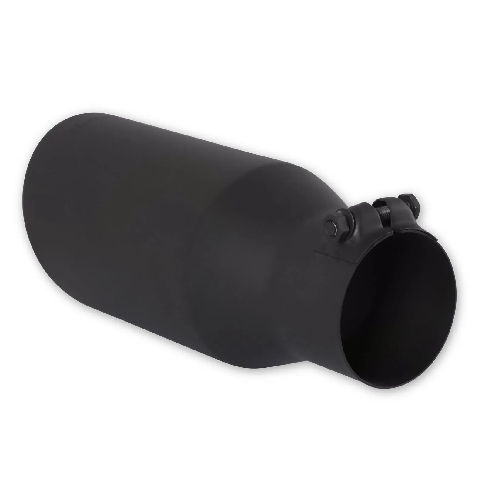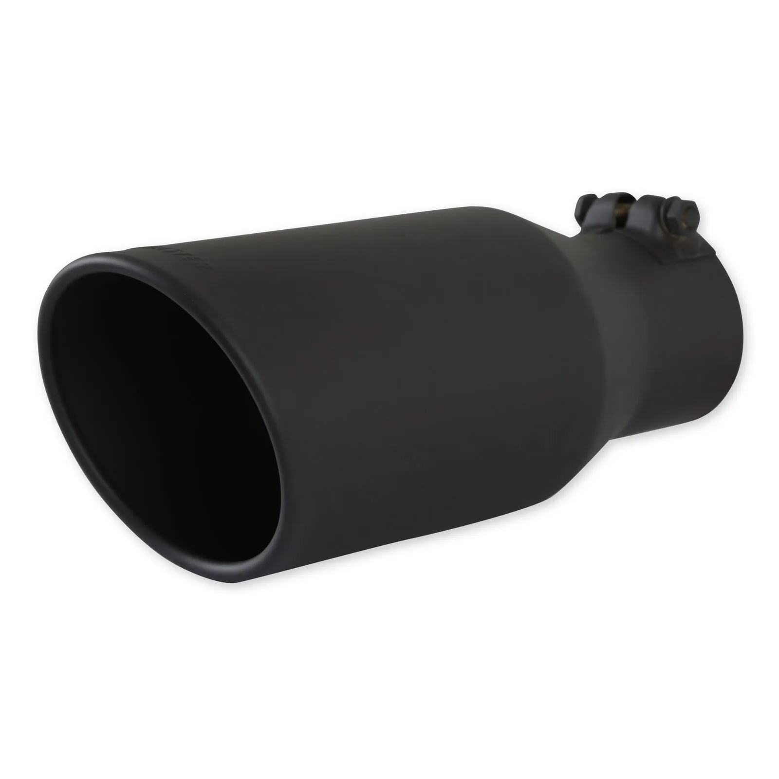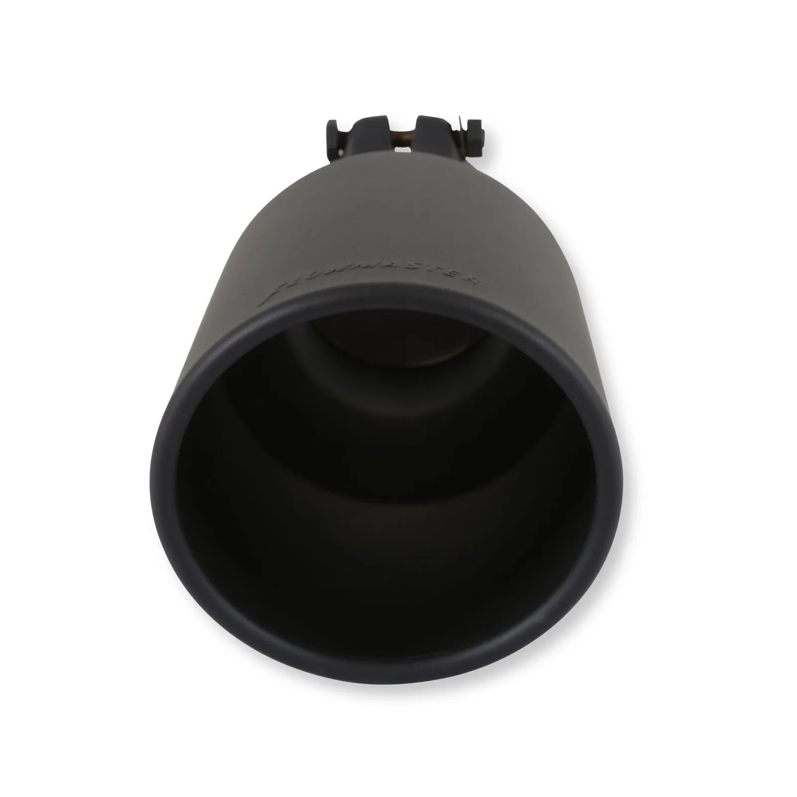 This black ceramic coated tip is a great way to customize your vehicle. Designed for 3.00-inch tailpipes, this 4.50-inch tip is 11.00-inches long, has an angled rolled edge and is finished off with the Flowmaster logo embossed at the end of the tip. This is a clamp on style tip to allow for an easy installation with basic hand tools. Backed by Flowmaster's three year Limited Warranty.
