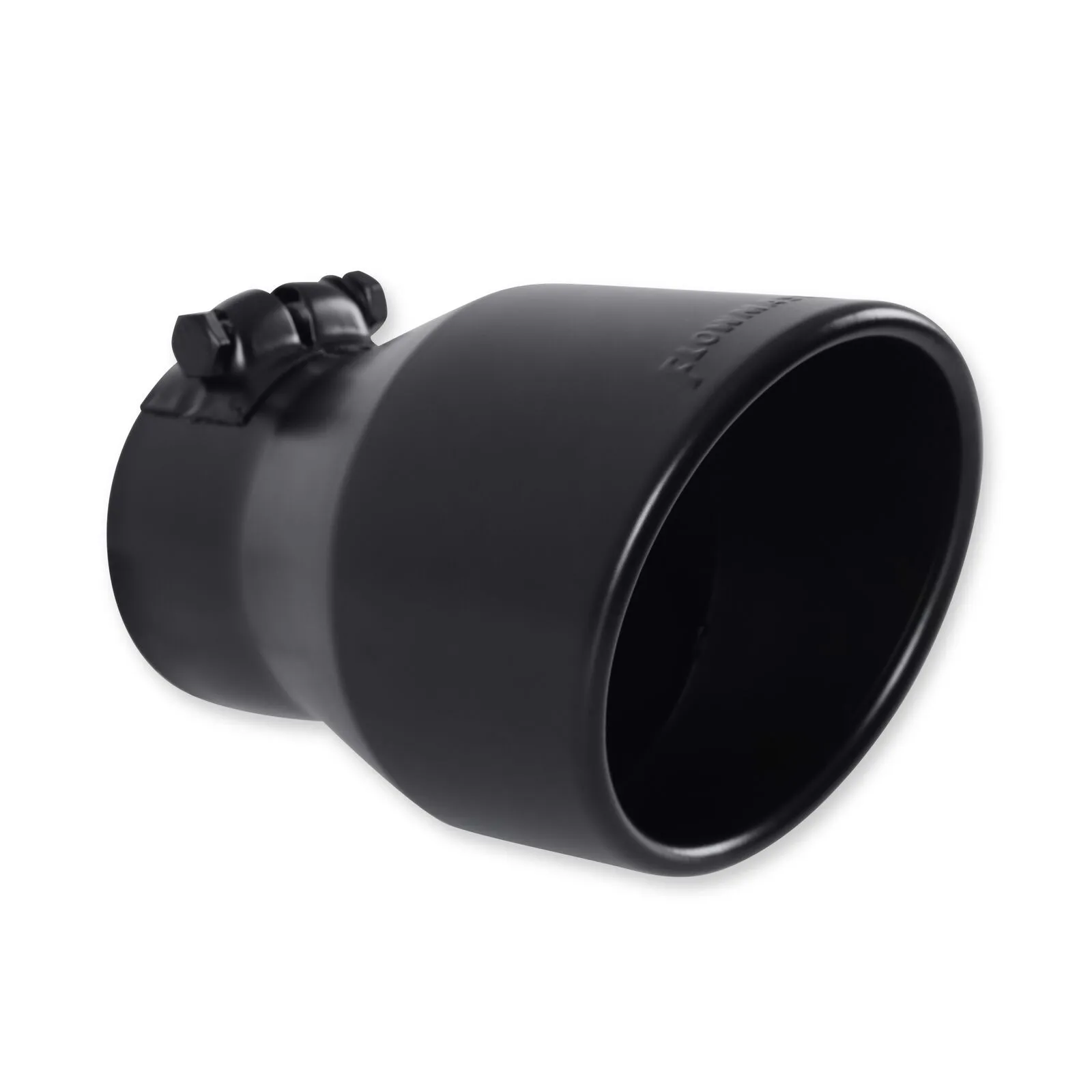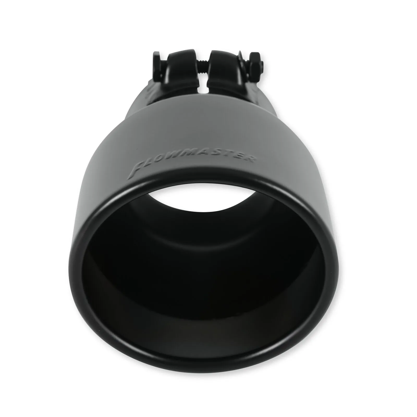 This black ceramic coated tip is a great way to customize your vehicle. Designed for 3.00-inch tailpipes, this 4.500-inch tip is 7.00-inches long, has an angled rolled edge and is finished off with the Flowmaster logo embossed at the end of the tip. This is a clamp on style tip to allow for an easy installation with basic hand tools. Backed by Flowmaster's three year Limited Warranty.