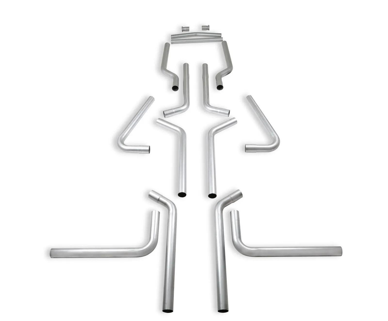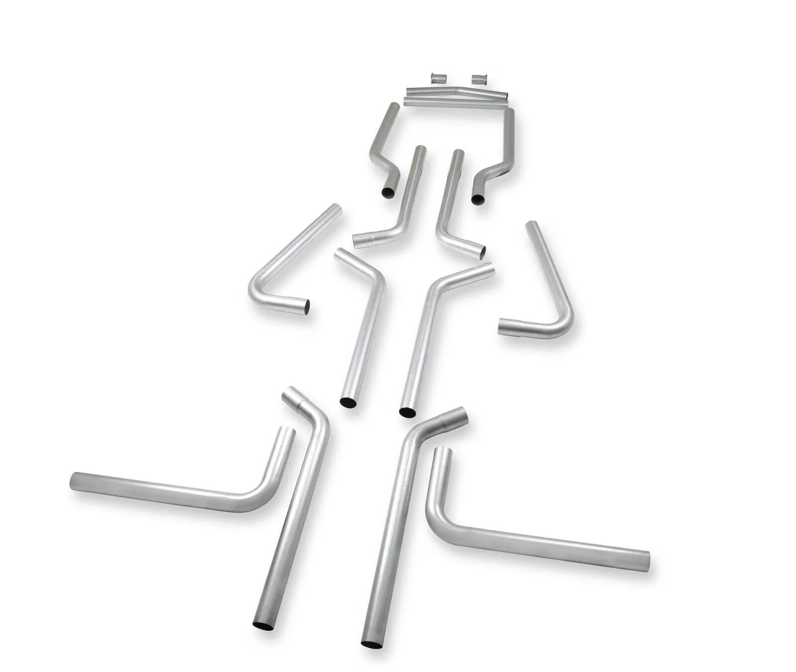 Looking for a great way to help create that custom exhaust system, but want the durability of Aluminized steel as well? Flowmaster's U-Fit Dual kit is a universal package that contains enough components to fabricate a complete mandrel bent dual exhaust system on nearly any street rod, muscle car or pickup. The slip-fit kit contains twelve pieces of 2.50-inch diameter tubing in carefully selected bend configurations and four additional 2.00-inch diameter components for a crossover pipe fabrication so you can create a custom tailored system for your demanding vehicle project. Constructed from durable 16 gauge Aluminized steel, it delivers the type of durability builders have longed for.
