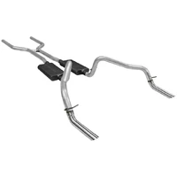 This American Thunder® exhaust system comes as a complete true dual Crossmember-Back exhaust for your 1970-1974 Chevrolet Camaro or Pontiac Firebird with V8 engine. These dual systems feature 2.50-inch mandrel-bent aluminized steel tubing for maximum performance, includes a built-in H-pipe/balance tube flowing into a pair of Slimline 50 Series® Delta Flow mufflers that deliver a moderate to aggressive interior and exterior tone and are suited to the enthusiast who wants their performance to be heard. The 2.50-inch tailpipes exit straight out under the rear bumper and are finished off with 2.50-inch angle-cut brushed stainless steel tips and includes all hangers and necessary hardware for installation. Like all Flowmaster® systems, the benefits include improved throttle response, power and mileage. Covered by our 3-year Limited Warranty.