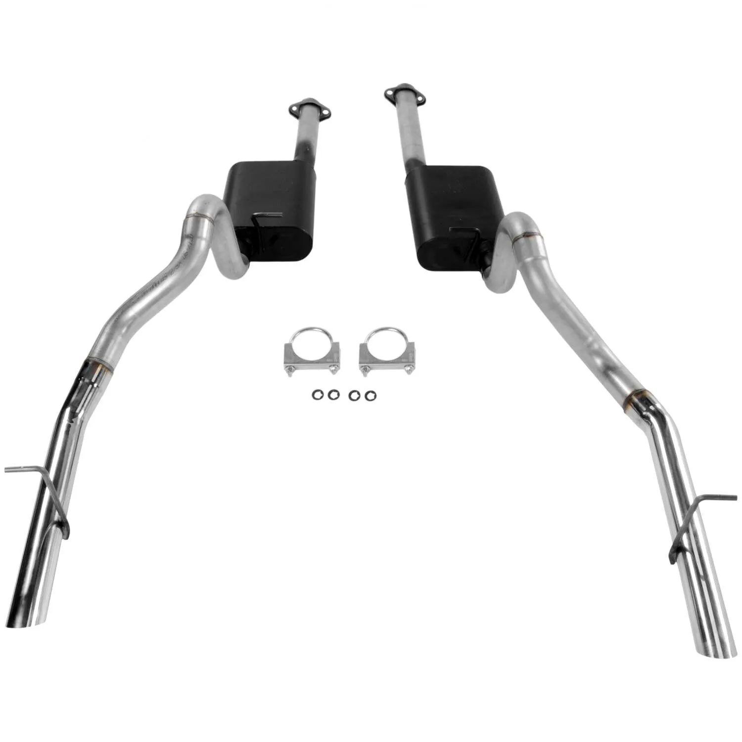 Our American Thunder® exhaust system for 1994-1997 Ford Mustang GT and Cobra models with a 4.6L or 5.0L engine is a bolt-on emissions legal system featuring free-flowing 2.50-inch aluminized steel mandrel-bent inlet pipes, aluminized steel tailpipes and uses the factory hanger locations for quick and easy installation. This Flowmaster® exhaust system comes with a pair of Super 44 Series™ performance mufflers incorporating Delta Flow® technology with a deep powerful sound. The system is finished off with a pair of long 2.50-inch polished 304 stainless steel tips for that show car look. Comes with all necessary hardware and easy to follow instructions. Note: Fits coupes and convertibles.