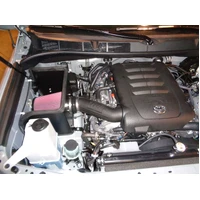 Take the performance of your vehicle to the next level with the addition of Flowmaster's new Delta Force® Performance Air Intake system for 2012-2018 Toyota Tundra Trucks with 5.7L engine. The Delta Force system contains an ultra-trick looking, custom molded black Cross-Linked Polyethylene (XLPE) high-flow intake tube, black anodized aluminum fittings (when applicable), high quality reinforced silicone couplers and all stainless steel hardware. Other features include a large diameter high-flow conical shaped 8 layer cotton gauze air filter, which traps more dirt than typical 6 layer designs, a custom-fit black powder-coated air dam with attachment brackets to securely mount the system in place along with soft bumpers to eliminate any metal to metal contact under the hood. The Delta Force Air Filters are serviceable with our new Delta Force cleaning kits which will help outlast your vehicle. For maximum performance and that iconic Flowmaster® exhaust tone, we highly recommend pairing your new Delta Force Performance Air Intake with a Flowmaster exhaust system.