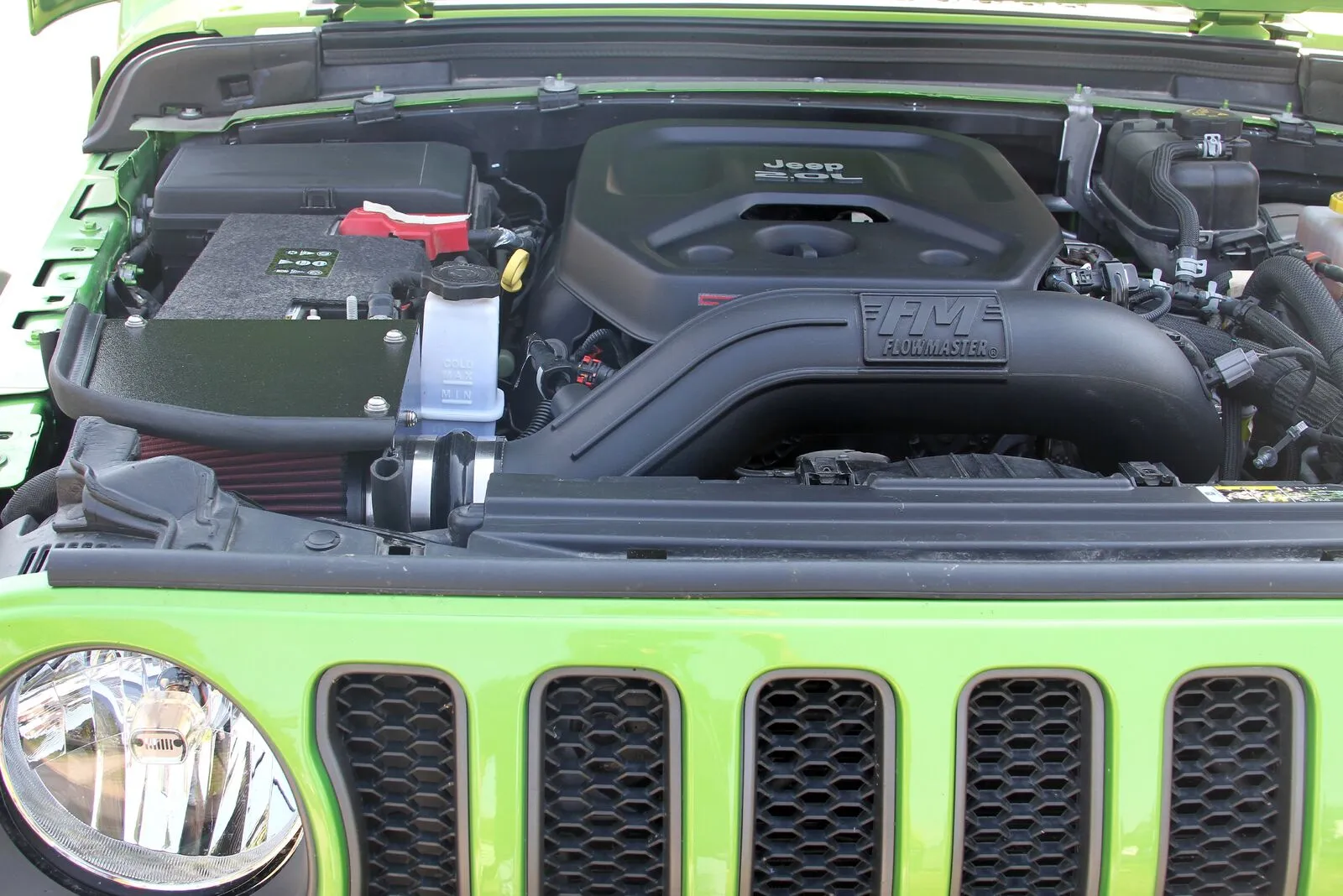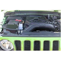 Take the performance of your vehicle to the next level with the addition of Flowmaster's new Delta Force Performance Air Intake system for 2018-2024 Jeep Wrangler JL (2 & 4 doors) with the 2.0L engine. The Delta Force system contains an ultra-trick looking, custom molded black Cross-Linked Polyethylene (XLPE) high-flow intake tube, black anodized aluminum fittings (when applicable), high quality reinforced silicone couplers and all stainless steel hardware. Other features include a large diameter high-flow conical shaped 8-layer cotton gauze air filter, which traps more dirt than typical 6-layer designs, a custom-fit black powder-coated air dam with attachment brackets to securely mount the system in place along with soft bumpers to eliminate any metal to metal contact under the hood. Note: this product has been granted a California Air Resources Board (CARB) exemption, an E.O. number, or is a direct or consolidated replacement part. It is 50-state legal, per the application guide for 2018-2020 Wrangler 2.0L applications. CARB EO# D-698-9.