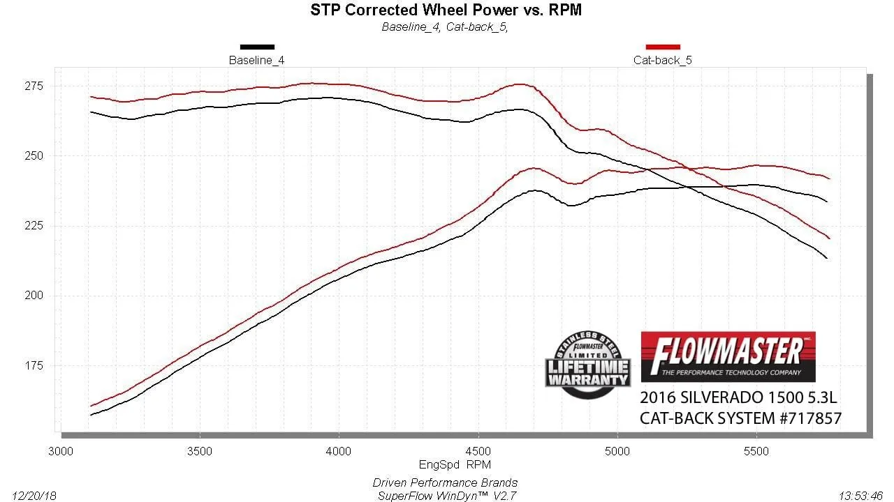 Introducing the new Flow FX® Cat-back exhaust system for 2014-2019*(*Classic body 5.3L, 4wd w/143.5-inch wb) GM Silverado/Sierra 4.3L and 5.3L engines. This performance exhaust system fits both 2/4 Wheel drive models with 143.5 and 153-inch wheelbases and is manufactured from 409S stainless steel for years of trouble-free service. Features include 3.00-inch inlet pipe leading into a Flow FX "straight-through" muffler for great sound and maximum performance. The single 3.00-inch mandrel-bent tailpipe exits out behind the rear passenger side tire and is finished off with large 4.50-inch diameter black ceramic coated 304S stainless steel tip, giving your Silverado/Sierra that custom look that goes hand in hand with the deep performance sound of the Flow FX muffler. The system uses all the factory hanger locations and connections for an easy installation that you can do at home. Includes installation instructions and all necessary hardware.