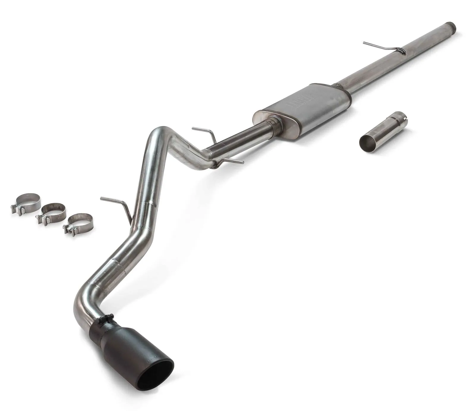Introducing our new Flow FX® Cat-back exhaust system for the 2019-2024 GM Silverado/Sierra 1500 with the 5.3L engine. The performance exhaust system fits both 2 and 4-Wheel drive models with 148 or 157-inch wheelbases and is manufactured from 409S stainless steel for years of trouble-free service. Features include a 3.00-inch inlet pipe leading into a Flow FX "straight-through" muffler for great sound and maximum performance. Maximum dyno gains of 10 hp and 12 lb.ft of torque at the rear wheels. The 3.00-inch mandrel-bent tailpipe exits out behind the rear passenger side tire and is finished off with large 4.50-inch diameter black ceramic coated 304S stainless steel tip, giving your Silverado/Sierra that custom look that goes hand in hand with the deep performance sound of the Flow FX muffler. The system uses all the factory hanger locations and connections for an easy installation that you can do at home. Includes detailed instructions and all necessary hardware.
