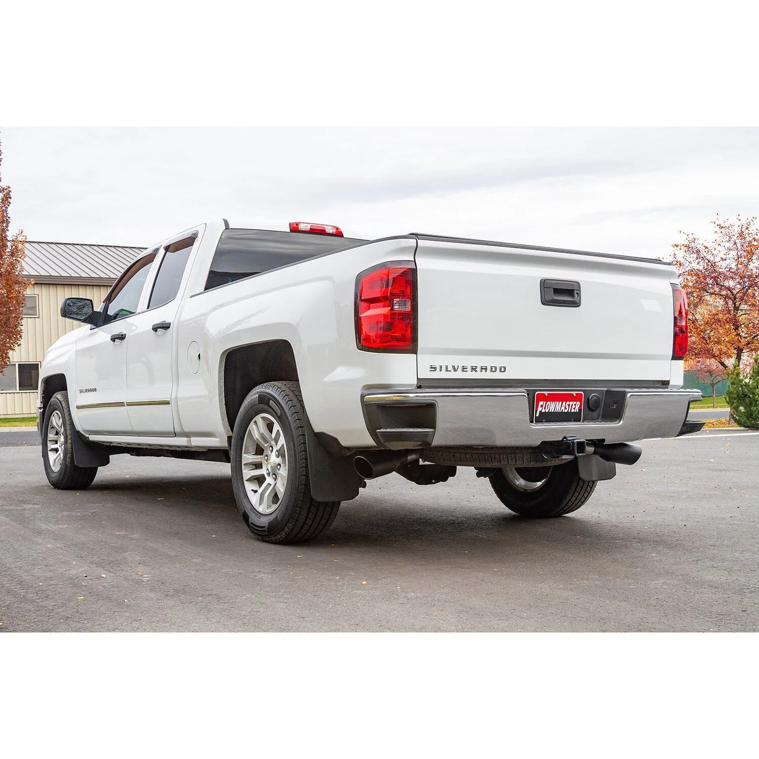 Our new Flowmaster® Flow FX® cat-back exhaust system is manufactured using durable 409 stainless steel throughout and features a 3.00-inch inlet pipe leading to a single inlet/dual outlet Flow FX "straight-through" muffler for great sound and maximum performance. The dual 2.50-inch mandrel-bent tailpipes exit out the side at an angle behind the rear wheels directing exhaust away from your boat or travel trailer when towing. The system is finished off with a pair of large 4.50-inch diameter black ceramic coated 304S stainless steel tips, giving your truck a custom look that goes hand in hand with that deep performance Flow FX sound. The system uses all the existing factory hanger locations and includes an additional hanger to install the new left side tailpipe. Includes installation instructions and all necessary hardware for an easy installation that you can do at home. Notes: Fits 2/4wd models with 143.5 and 153-inch wheelbases and *2019 Classic body models.