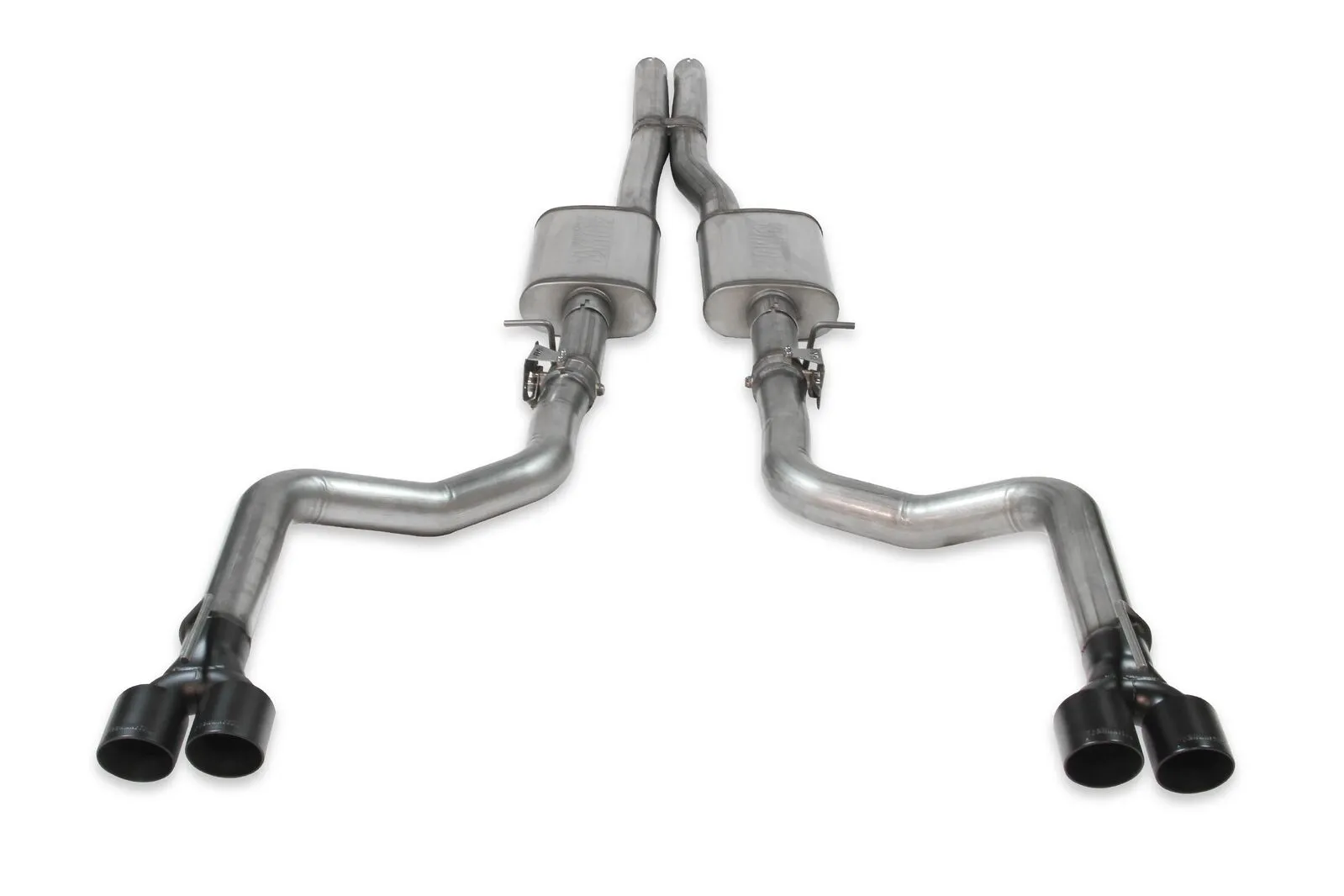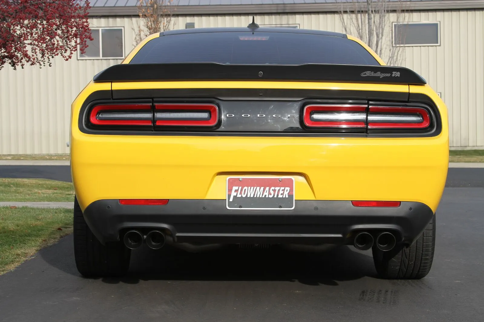 Introducing Flowmaster's new Flow FX Cat-back exhaust system for the 2017-2023 Dodge Challenger R/T and TA with the 5.7L Hemi engine and Factory Active Exhaust Valves. This system is perfect for the person looking for a moderately aggressive exterior and interior sound level with all of the performance benefits that you would expect from Flowmaster. Features include mandrel bent 3.00-inch stainless steel tubing into the Scavenger X-pipe cross-over for maximum performance and tone, flowing into a pair our new Flow FX "straight-through" performance mufflers for a deep and powerful sound. The dual 3.00-inch mandrel bent stainless tailpipes retain the Factory Active Exhaust Valves and the system is finished off with aggressive looking quad 3.50-inch black ceramic coated 304s stainless steel tips embossed with the Flowmaster name, putting everyone on notice that you would rather lead than follow. The large quad tips exit within the rear bumper valance and gives your car the look that it should have come with from the factory. This system is designed to use the factory hanger locations, includes all necessary parts, hardware and detailed instructions for a relatively easy at home installation