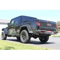 Introducing the new Flow FX™ cat-back exhaust system for the 2020-2024 Jeep Gladiator with 3.6L engine. This stainless steel performance exhaust system starts with large 3-inch mandrel-bent tubing flowing into the Flow FX "straight-through" performance muffler. The mandrel-bent tailpipe exits behind the passenger side rear tire and is finished off with a large 4.50-inch black ceramic coated exhaust tip embossed with the Flowmaster® name. This system creates a deep powerful sound outside the vehicle with a moderate tone inside the cab and utilizes the factory hanger locations. Includes all necessary parts, hardware and detailed instructions for an easy installation you can do at home.