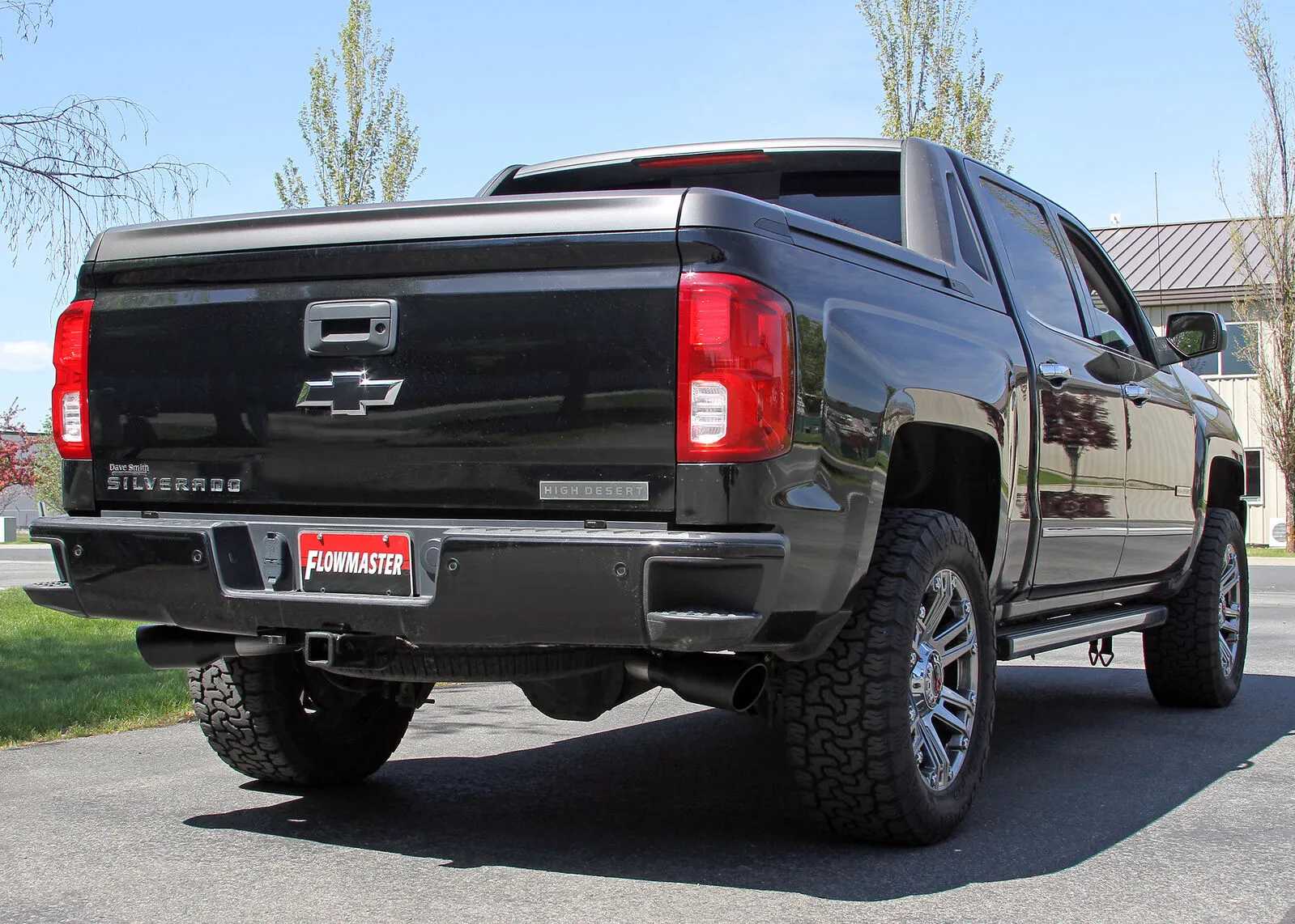 This Flowmaster® Flow FX® cat-back exhaust system for the 2011-2018 GM 1500 trucks with the 6.2-liter V8 engine is manufactured using durable 409 stainless steel throughout and features single 3.50-inch to dual 2.50-inch mandrel bent pipes for better exhaust gas flow, and a Flow FX "straight-through" muffler is used for a moderate sound level and maximum performance. Maximum increases on the dyno revealed +11 hp and +15 lb-ft at the rear wheels. This system exits out both sides, behind the rear wheels with 4.50-inch black ceramic tips for added style and a custom look. The system uses all the existing factory hanger locations and includes installation instructions and all necessary hardware for an easy installation that you can do at home. Backed by Flowmaster's Lifetime Limited Warranty.