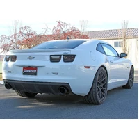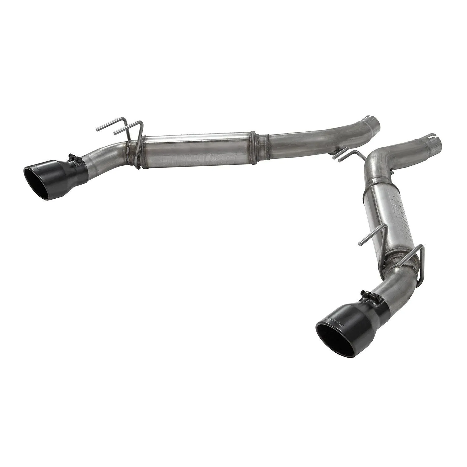 This new Flowmaster® Flow FX® axle-back exhaust system for the 2010-2015 Chevrolet Camaro with the 6.2-Liter engine is manufactured using durable 409 stainless steel throughout and features 3.00-inch mandrel bent pipes for better exhaust gas flow. Flow FX "straight-through" mufflers are used for an aggressive to moderate sound level and maximum performance. Maximum increases on the dyno revealed +8 hp and +15 lb.ft. at the rear wheels. This dual exit system has 4.50-inch black ceramic tips with the Flowmaster logo embossed in them for added style and a custom look. This system uses all the existing factory hanger locations and include installation instructions and all necessary hardware for an easy installation that you can do at home. Backed by Flowmaster's Lifetime Limited Warranty.
