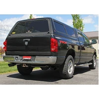 This Flowmaster® Flow FX® cat-back exhaust system for the 2006-2008 Dodge Ram 1500 trucks with the 5.7-liter Hemi engine is manufactured using durable 409 stainless steel throughout and features 3.00 to dual 2.50-inch mandrel bent pipes for better exhaust gas flow, and a Flow FX "straight-through" muffler is used for an aggressive to moderate sound level and maximum performance. Maximum increases on the dyno revealed +8 hp and +11 lb-ft at the rear wheels. This system exits out both sides, behind the rear wheels with 4.50-inch black ceramic tips for added style and a custom look. The system uses all the existing factory hanger locations and includes installation instructions and all necessary hardware for an easy installation that you can do at home. Backed by Flowmaster's Lifetime Limited Warranty.