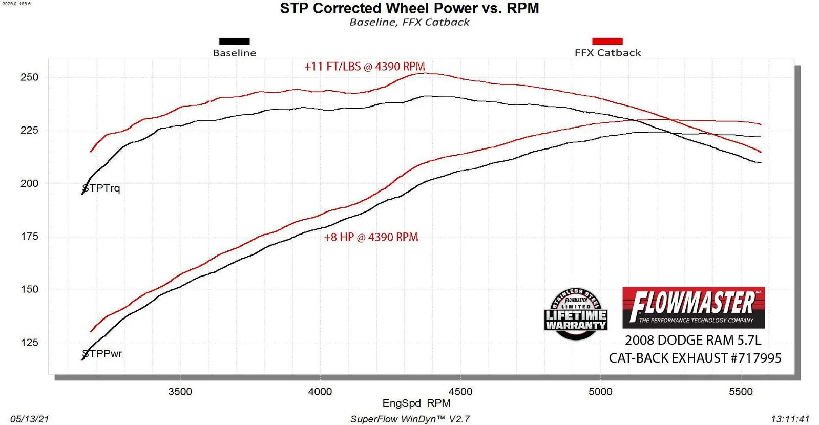 • Max increases of up to 8 hp and 11 lb-ft over the stock exhaust at the rear wheels