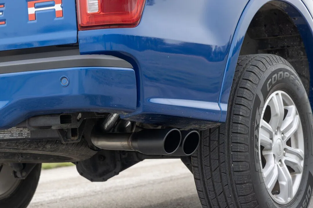This Flowmaster® Flow FX® cat-back exhaust system for the 2019-2023 Ford Ranger with the 2.3-liter engine is manufactured using durable 409 stainless steel throughout and features 3.00 to dual 2.50-inch mandrel bent pipes for better exhaust gas flow. This system exits with dual 3.50-inch black stainless steel tips for added style and a custom look. Max gains of 8 hp and 12 lb-ft of torque at the rear wheels over stock. The system uses all the existing factory hanger locations and includes installation instructions and all necessary hardware for an easy installation that you can do at home. Backed by Flowmaster's Lifetime Limited Warranty.